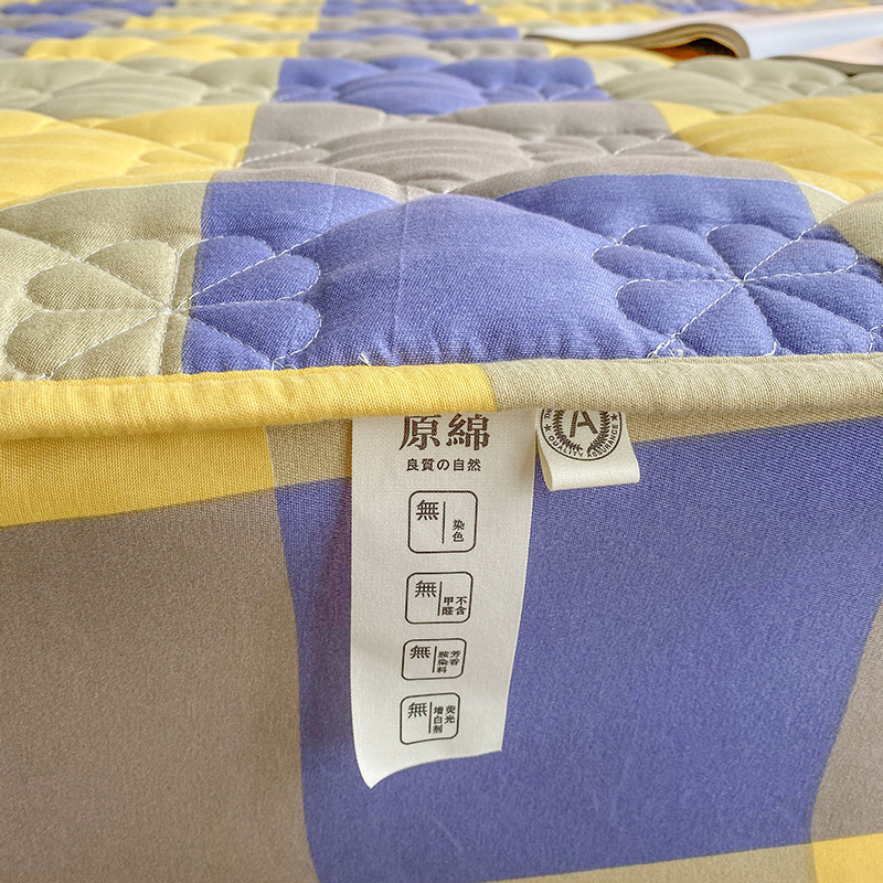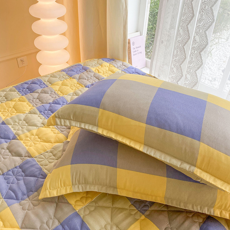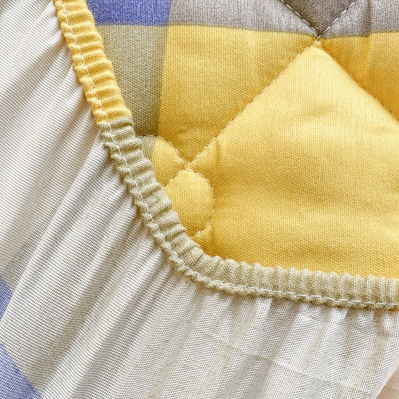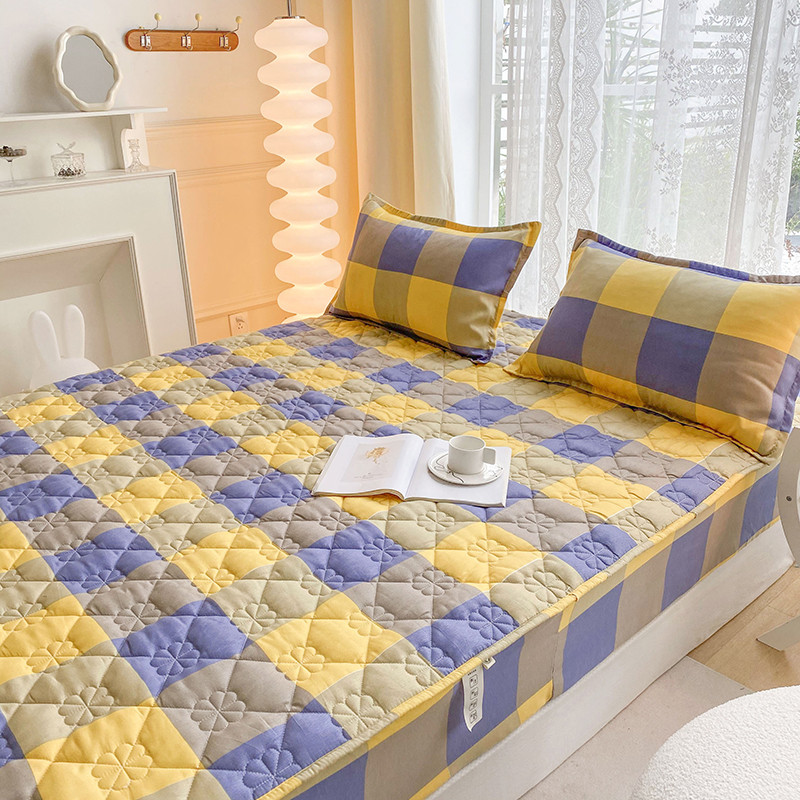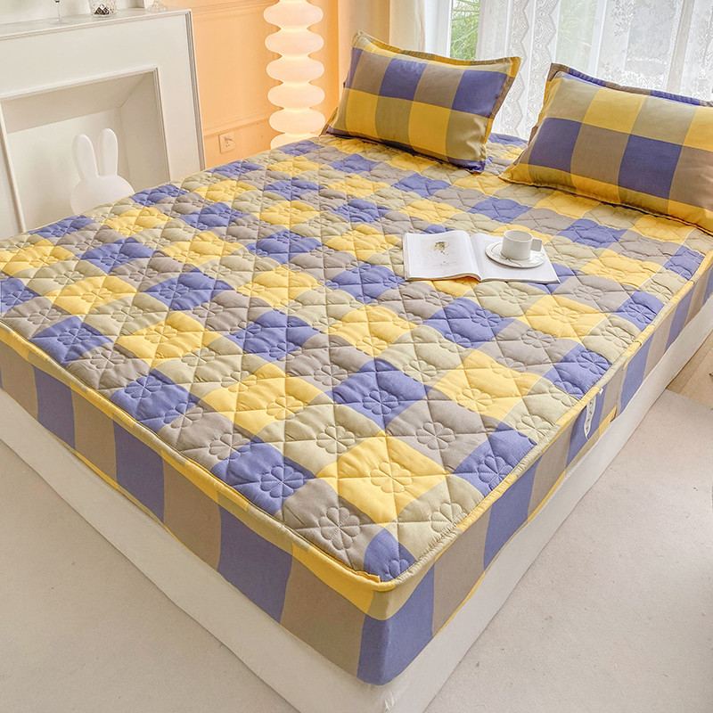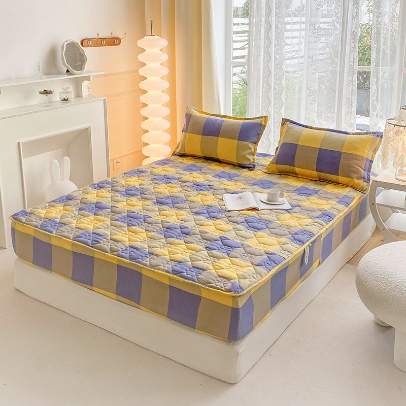 商品名称:米柳 2024新款亲肤夹棉印花床笠 紫黄大格