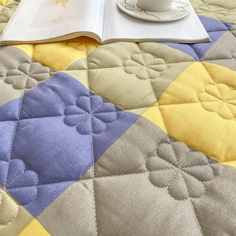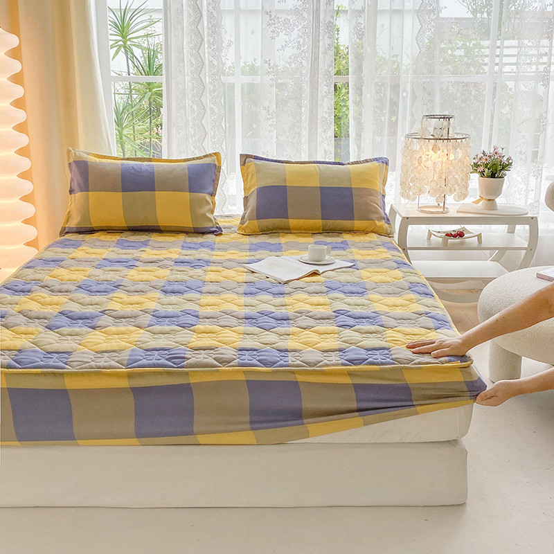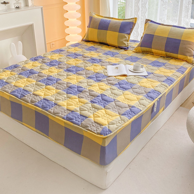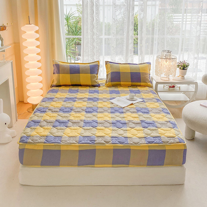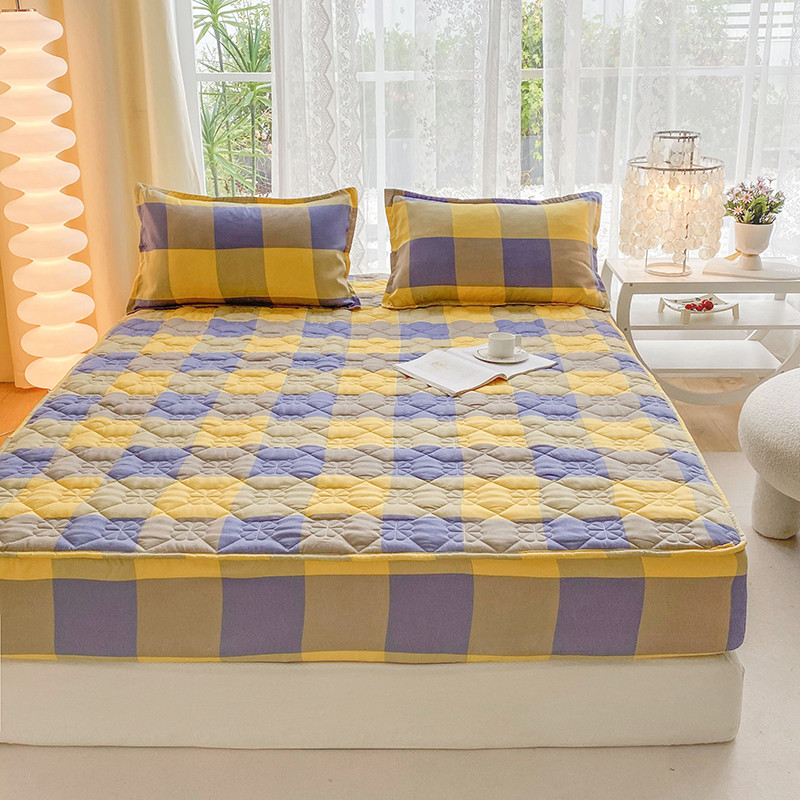 米柳 2024新款亲肤夹棉印花床笠 紫黄大格