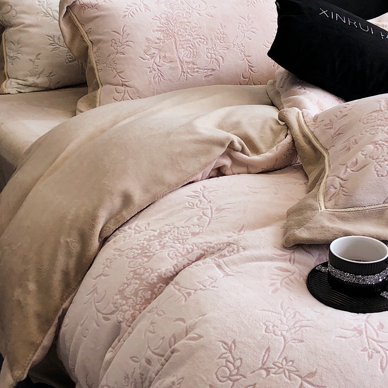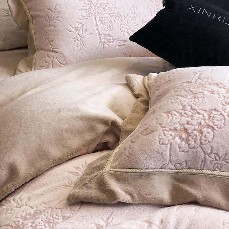 (总)馨蕊家居 2025新款意大利进口高精密刺绣拼角工艺秋冬法式高奢雪貂绒系列-绒雪芙 会员-10【券后控价358/378】,绒雪芙-奶咖,绒雪芙-蔷薇粉,绒雪芙-婉若紫,绒雪芙-月光白