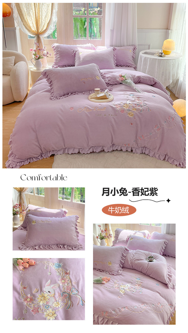 当前位置: 91家纺网 > 商品网购 > 床品套件 > 四件套 > 牛奶绒四件套 > 23直播爆款高克重刺绣牛奶绒四件套月小兔系列提供买家秀 月小兔-香妃紫