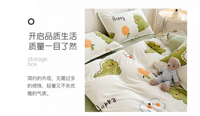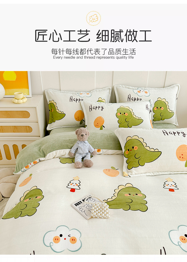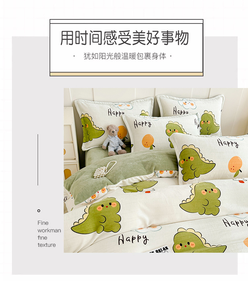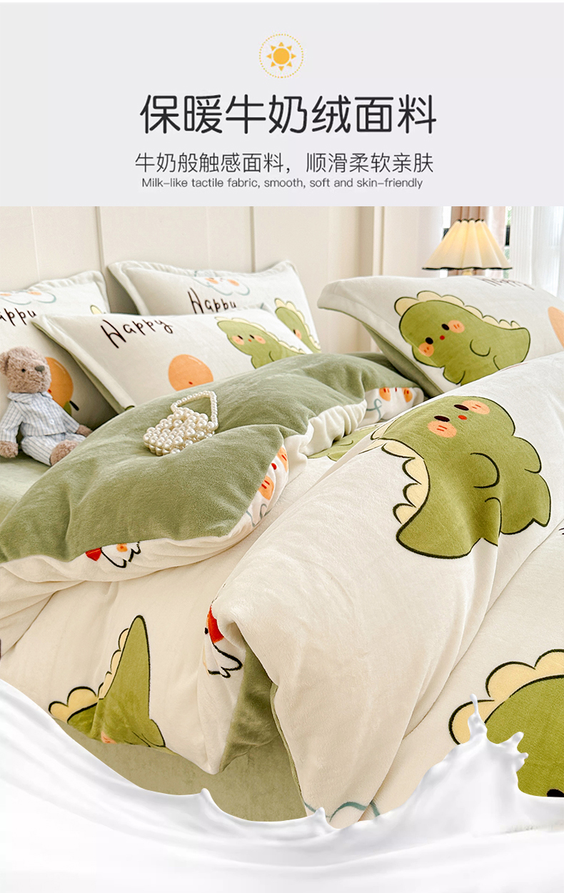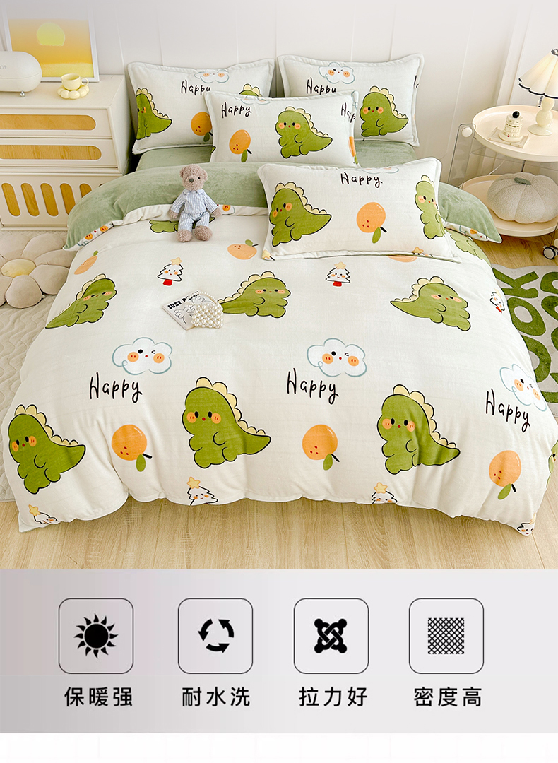 当前位置: 91家纺网 > 商品网购 > 床品套件 > 四件套 > 牛奶绒四件套 > 家贝爱 2023新款加厚牛奶绒四件套 欢乐恐龙