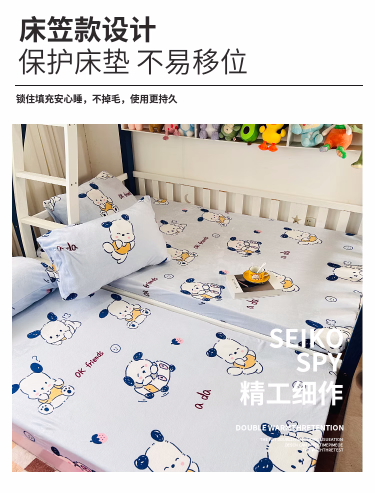 • 91家纺网 家纺一手货源 找家纺 小虾米 2023新款上下床加厚牛奶绒床笠 幸运小狗