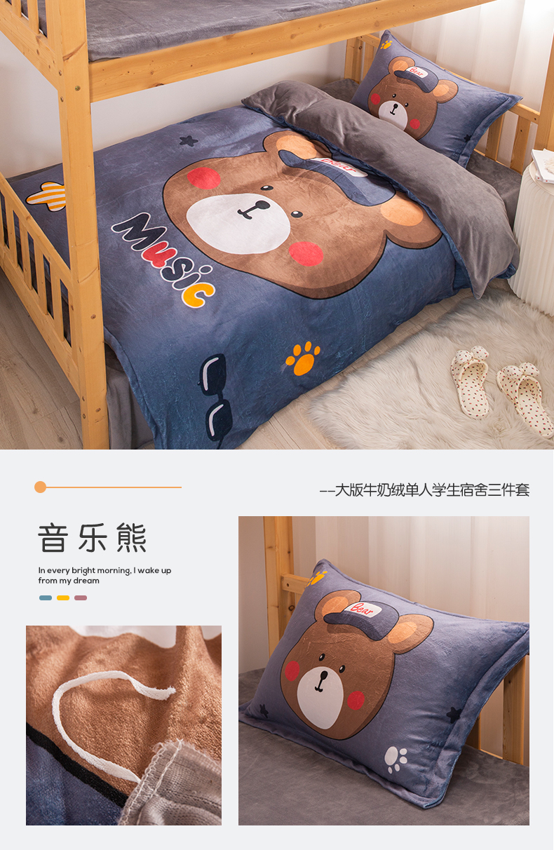 当前位置: 91家纺网 > 商品网购 > 床品套件 > 三件套 > 宅部落 2023新款大版卡通牛奶绒三件套 7.音乐熊