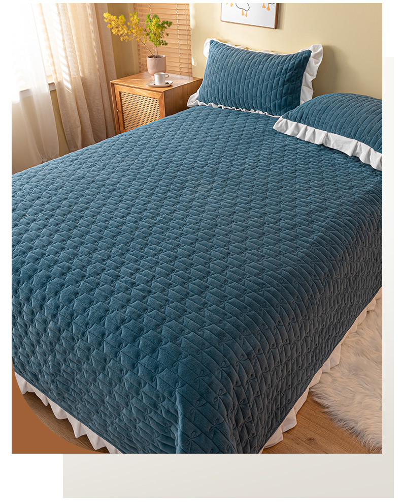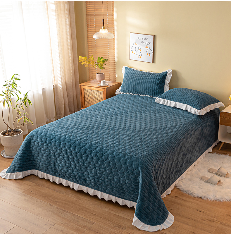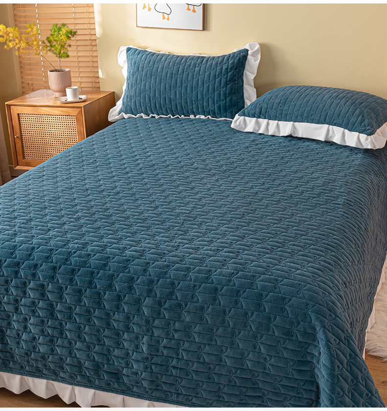 飞轮海蚊帐 2023新款J-1牛奶绒多功能夹棉花边床盖 黛蓝