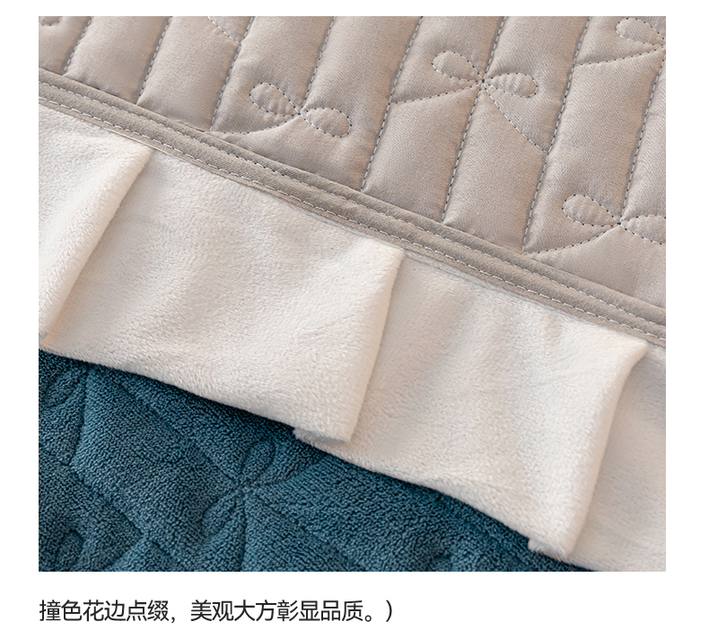 商品名称:飞轮海蚊帐 2023新款J-1牛奶绒多功能夹棉花边床盖 黛蓝