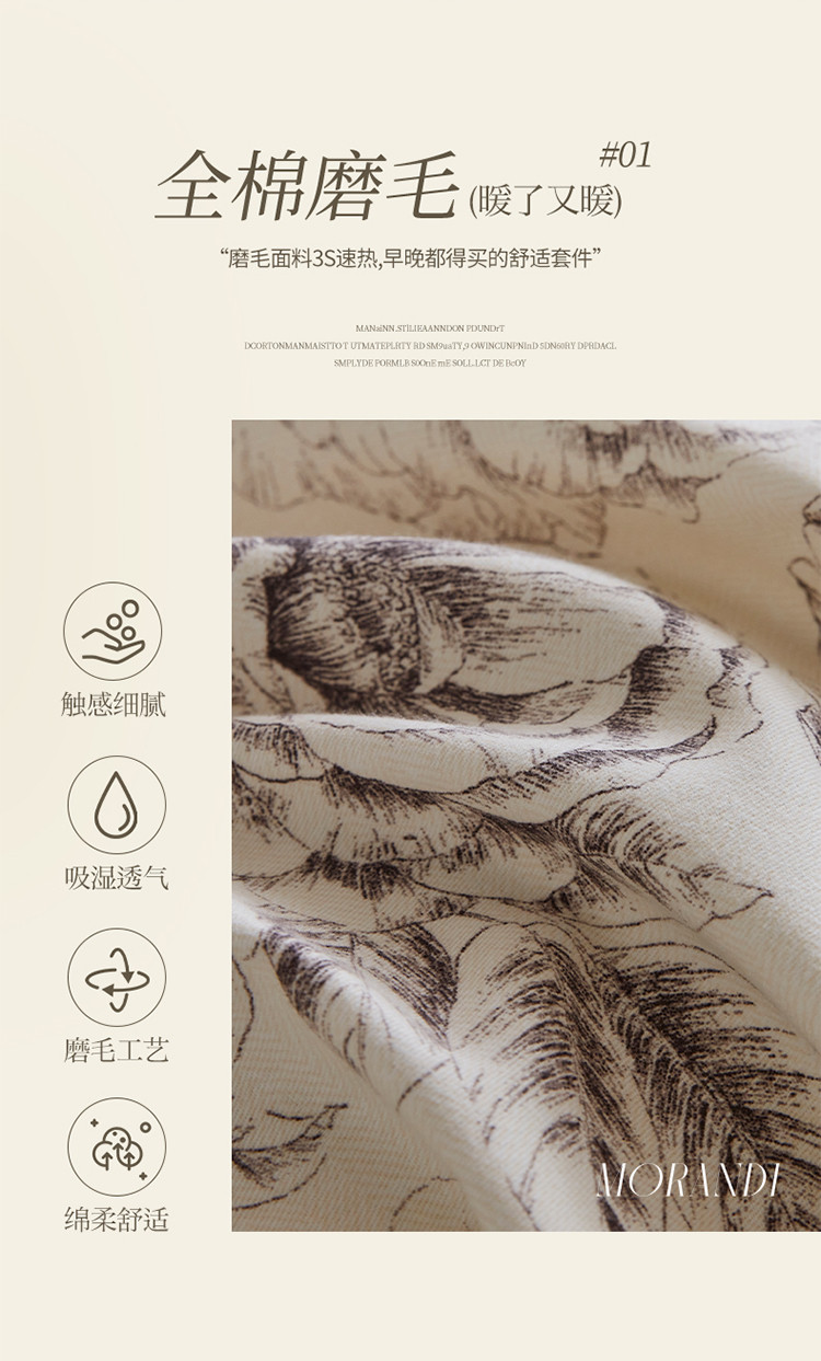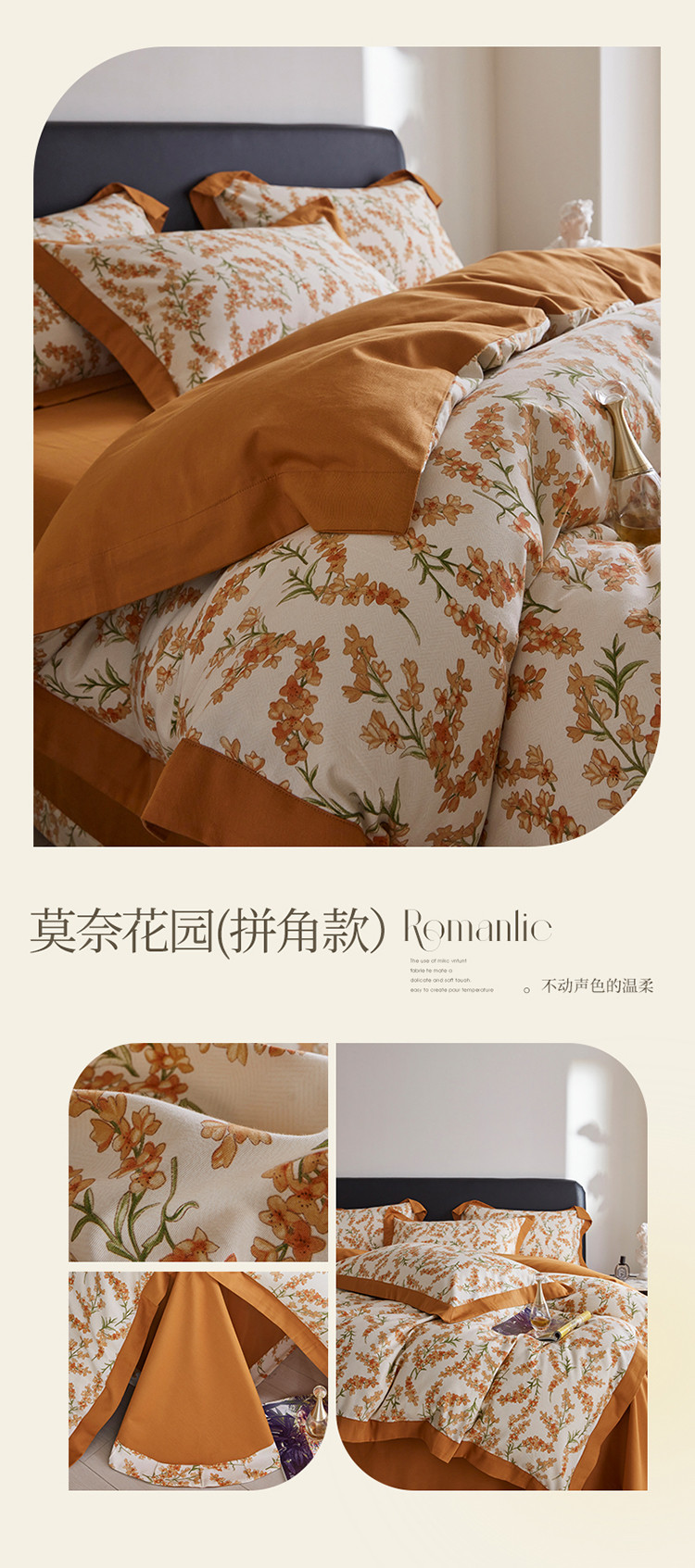 (总)嘉汀兰家居 2025新款长绒棉磨毛四件套—蔓莎,豆沙,灰色,桔色,绿色,香槟,紫色