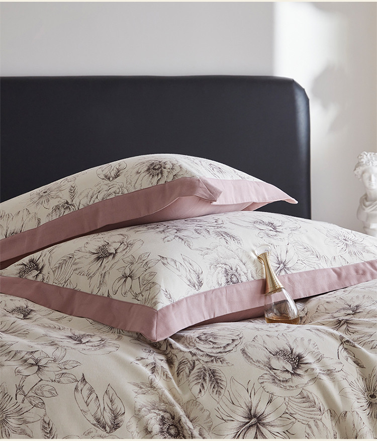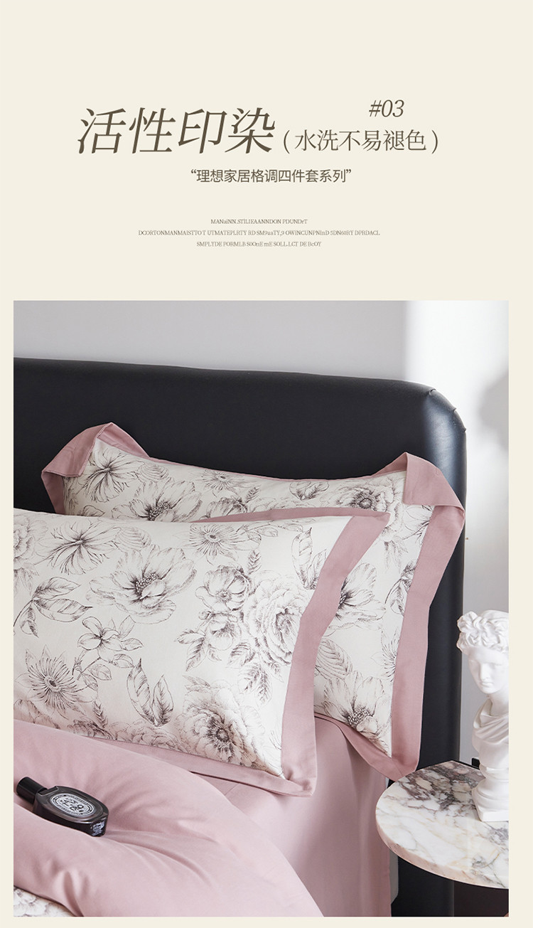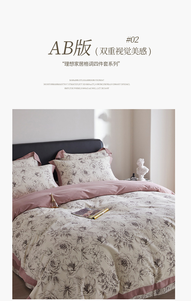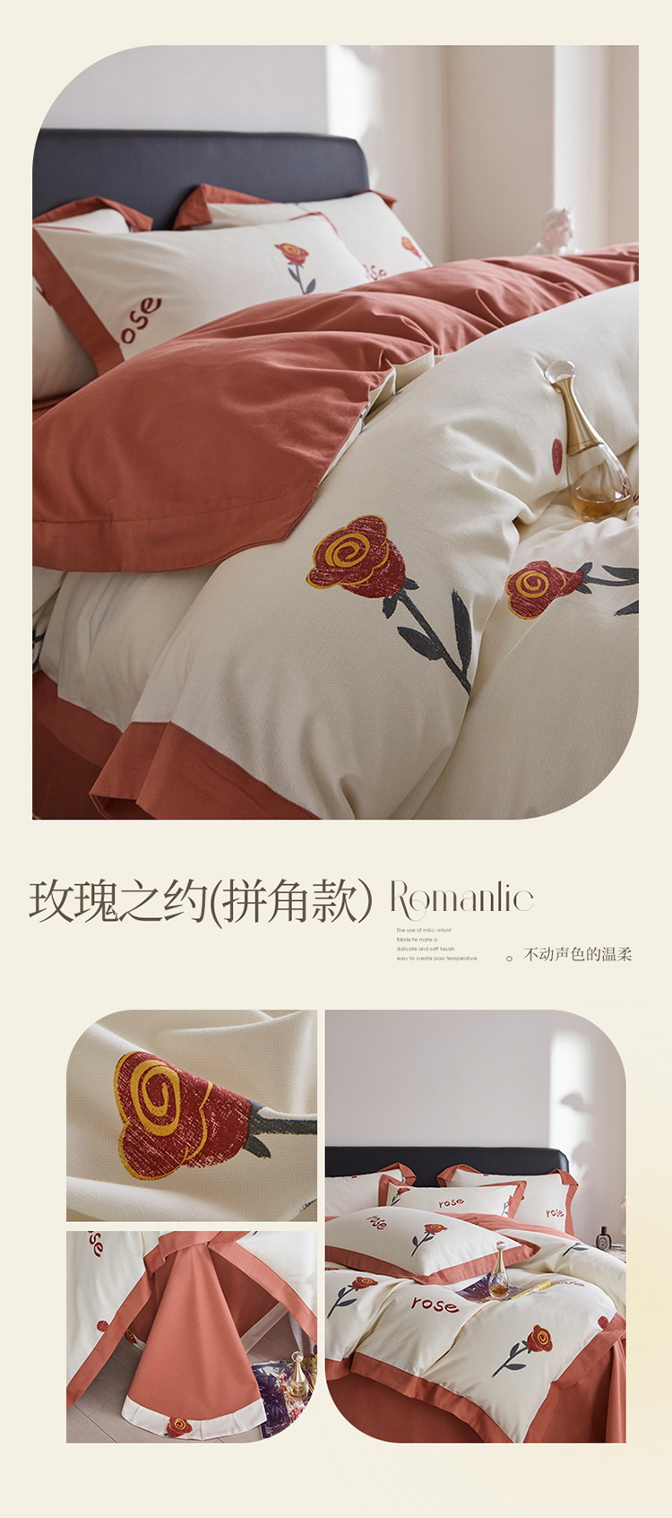 (总)嘉汀兰 2023新款60支全棉磨毛绣花撞色轻奢四件套—暮里,粉色,红灰色,芥绿色,浅灰色,深青色