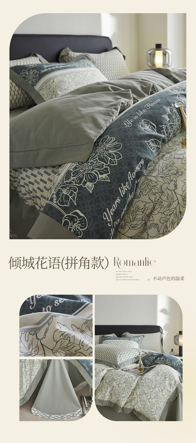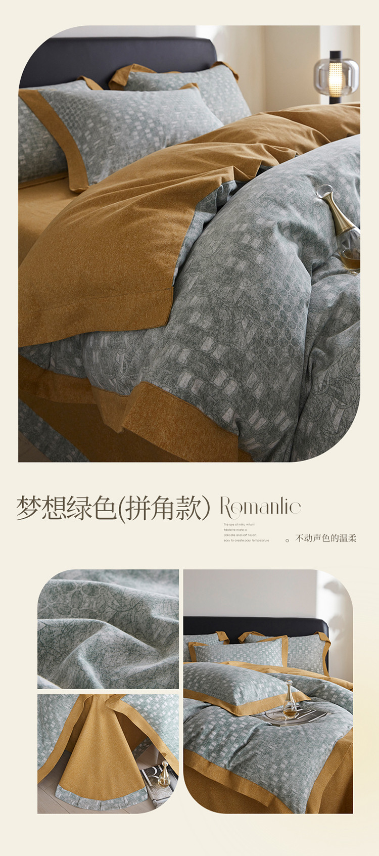 (总)嘉汀兰2025新款全棉臻品磨毛轻奢时尚秋冬加厚四件套-拼角款,浮生若梦,雾林-浅灰,星辰,杏花微雨,长相依-草绿