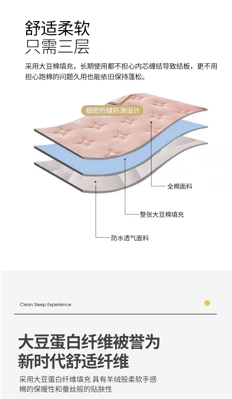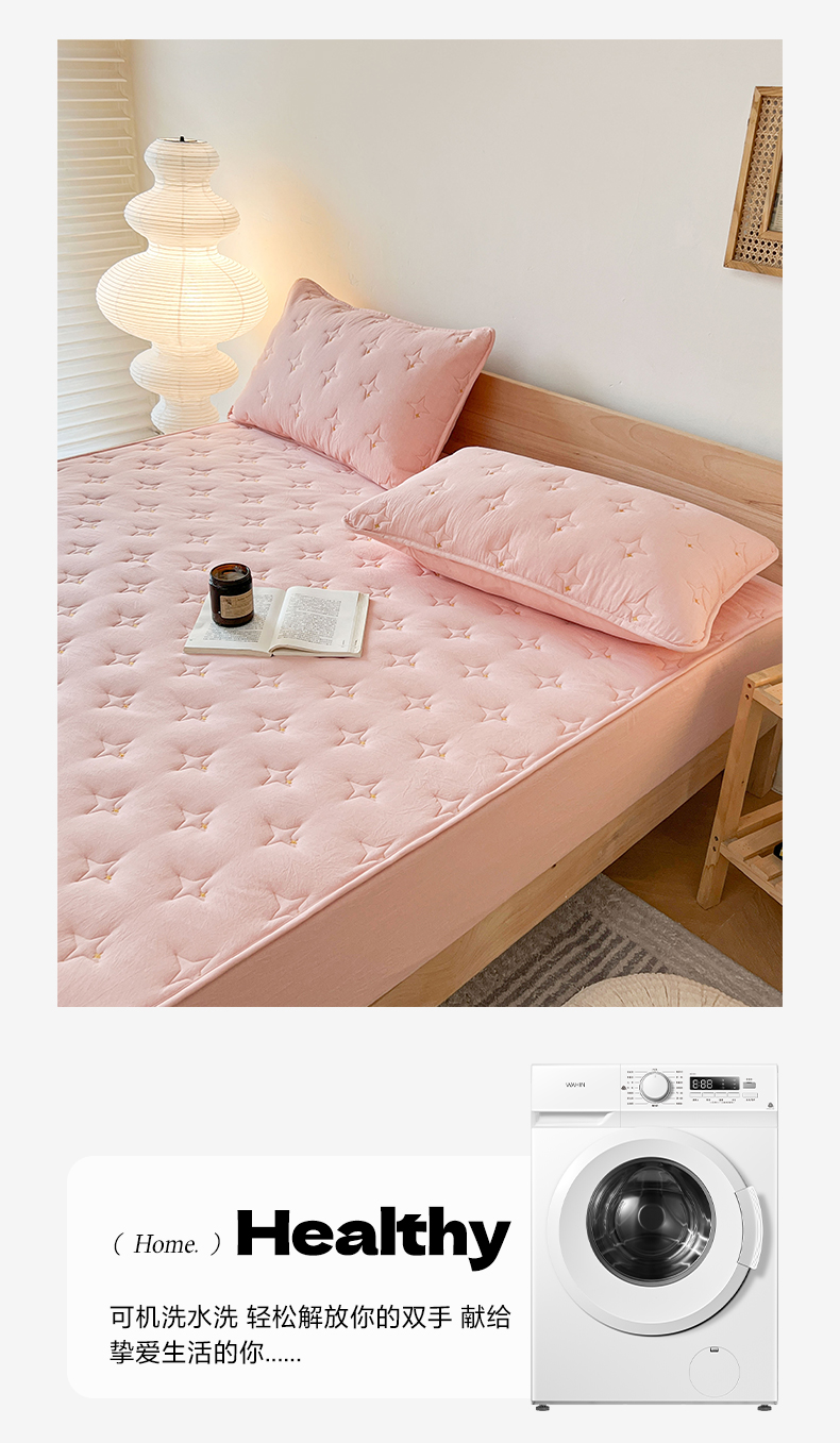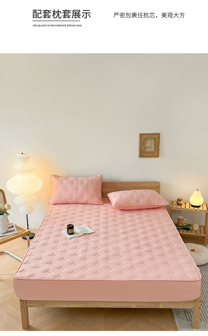 尊康家纺(原磊科) 2024新款全棉色织大豆夹棉床笠防水床笠-浓情蜜意 粉色