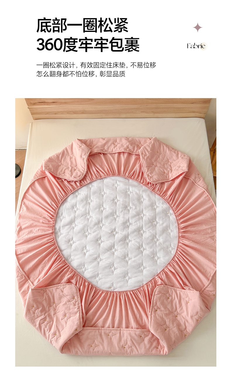 • 91家纺网 家纺一手货源 找家纺 尊康家纺(原磊科) 2024新款全棉色织大豆夹棉床笠防水床笠-浓情蜜意 粉色