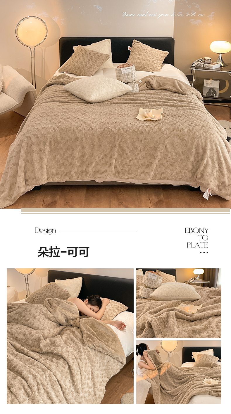 商品名称:秀色 2025新款A类冬季600g双面加厚保暖兔毛毯子午睡空调毯沙发毯盖毯-朵拉 朵拉-奶油白