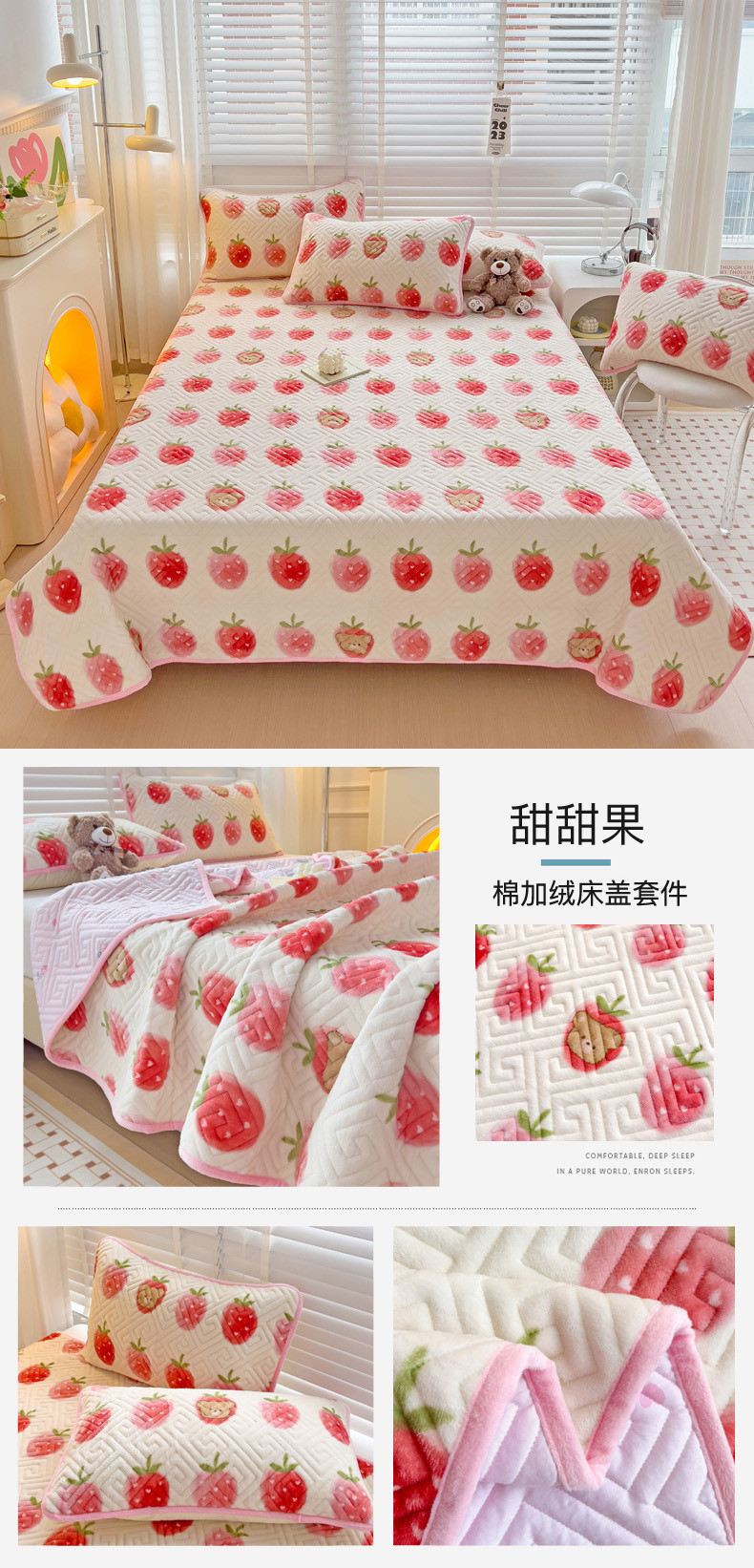 商品名称:羽爱 2024新款棉加绒床盖套件 甜甜果