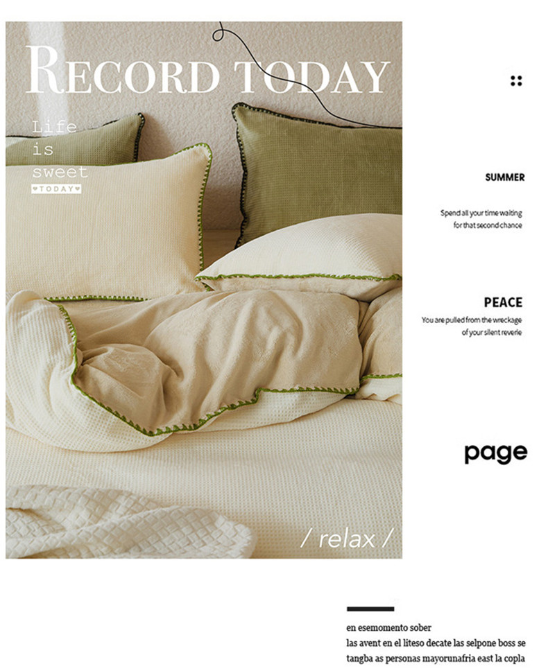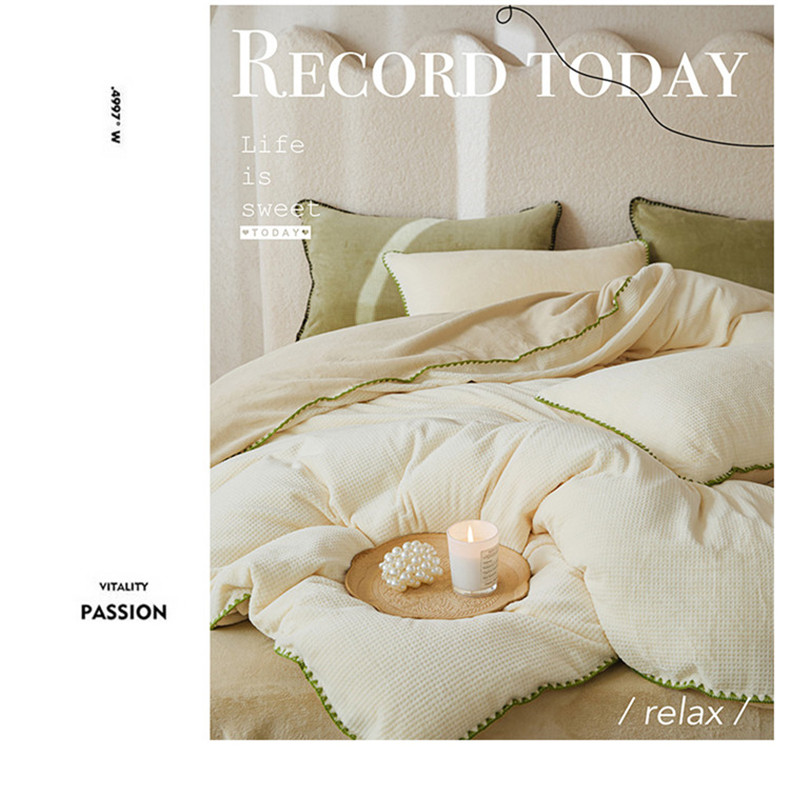 当前位置: 91家纺网 > 商品网购 > 床品套件 > 四件套 > 雕花绒四件套 > 新款华夫格立体雕花绒四件套-未央系列(英文版) 未央-暖白
