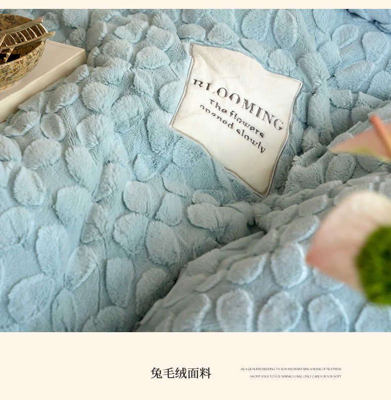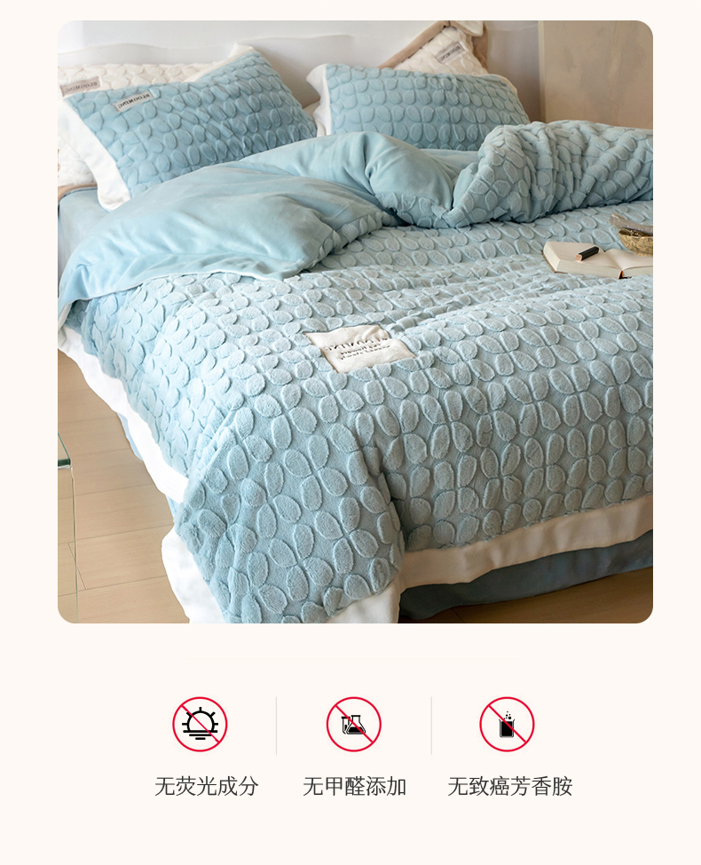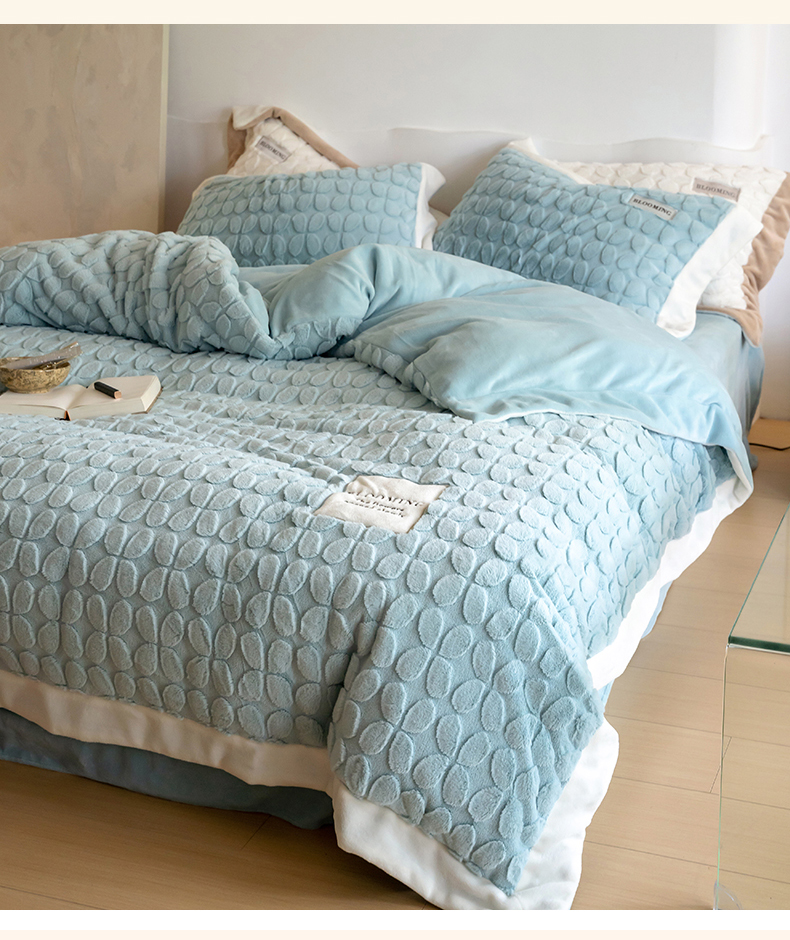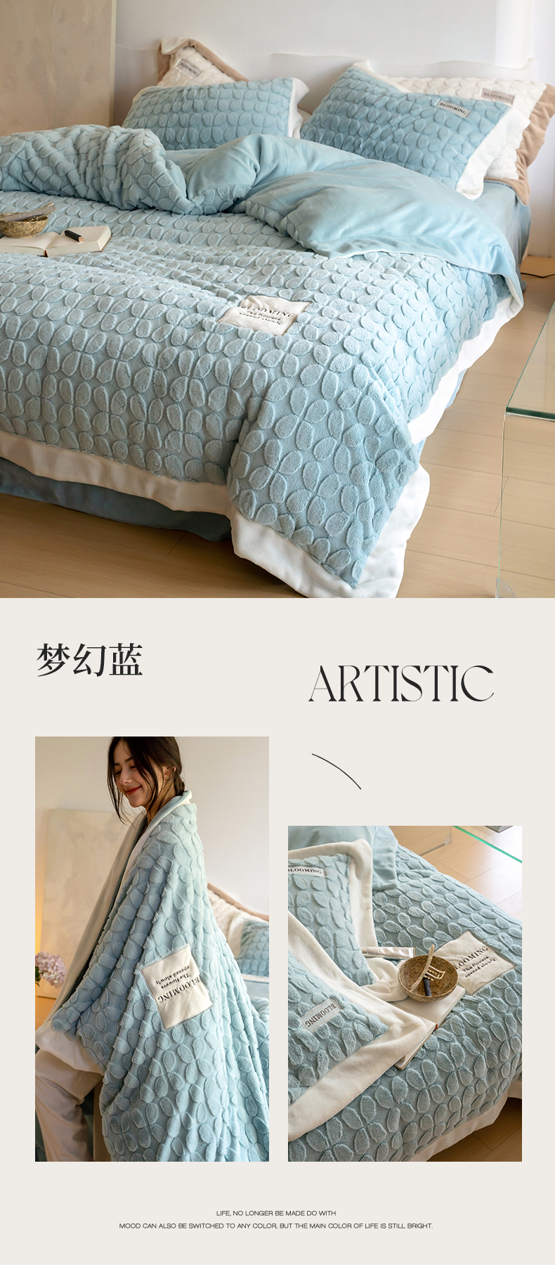 商品名称:名品优仓 2023新款A面兔毛绒B面牛奶绒系列四件套-布兰妮 梦幻蓝