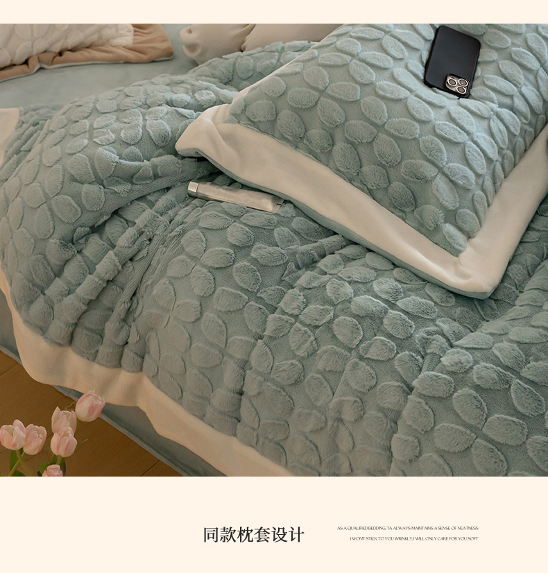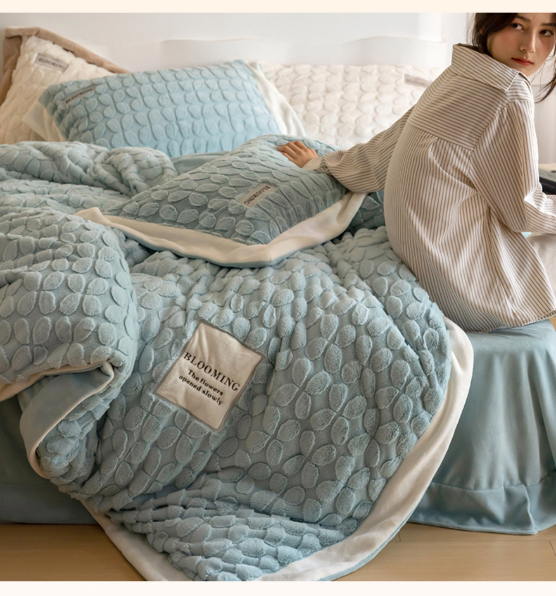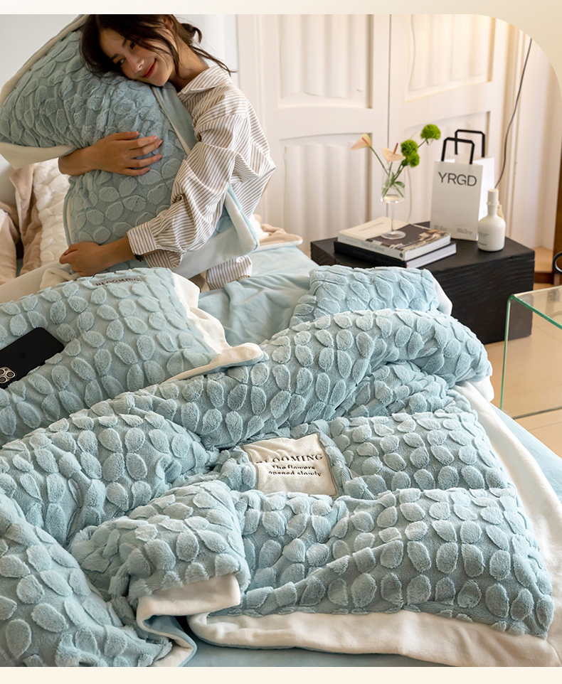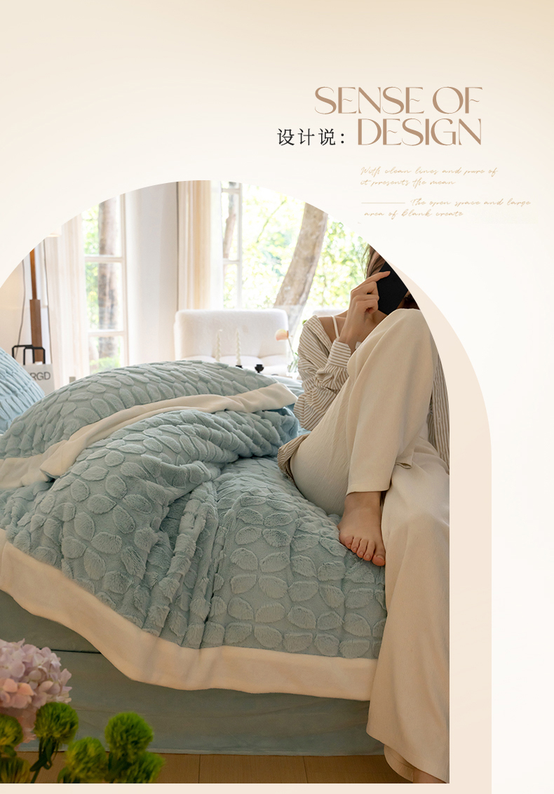 商品名称:名品优仓 2023新款A面兔毛绒B面牛奶绒系列四件套-布兰妮 梦幻蓝