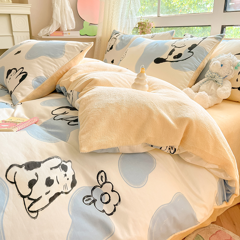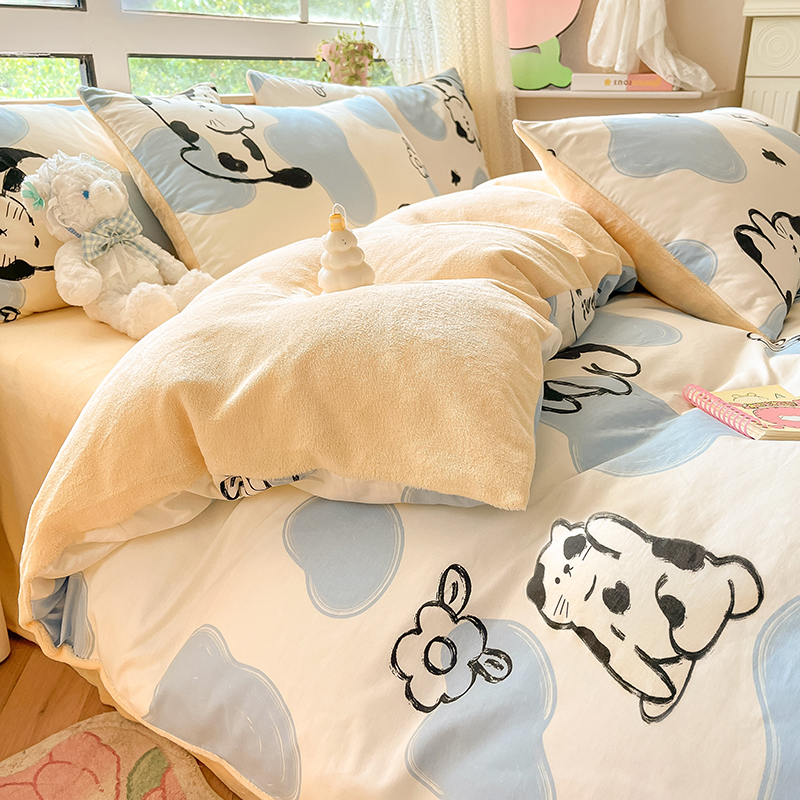 商品名称:麦伦家居 2023新款秋冬多功能床品全棉加牛奶绒单被套 斑点猫