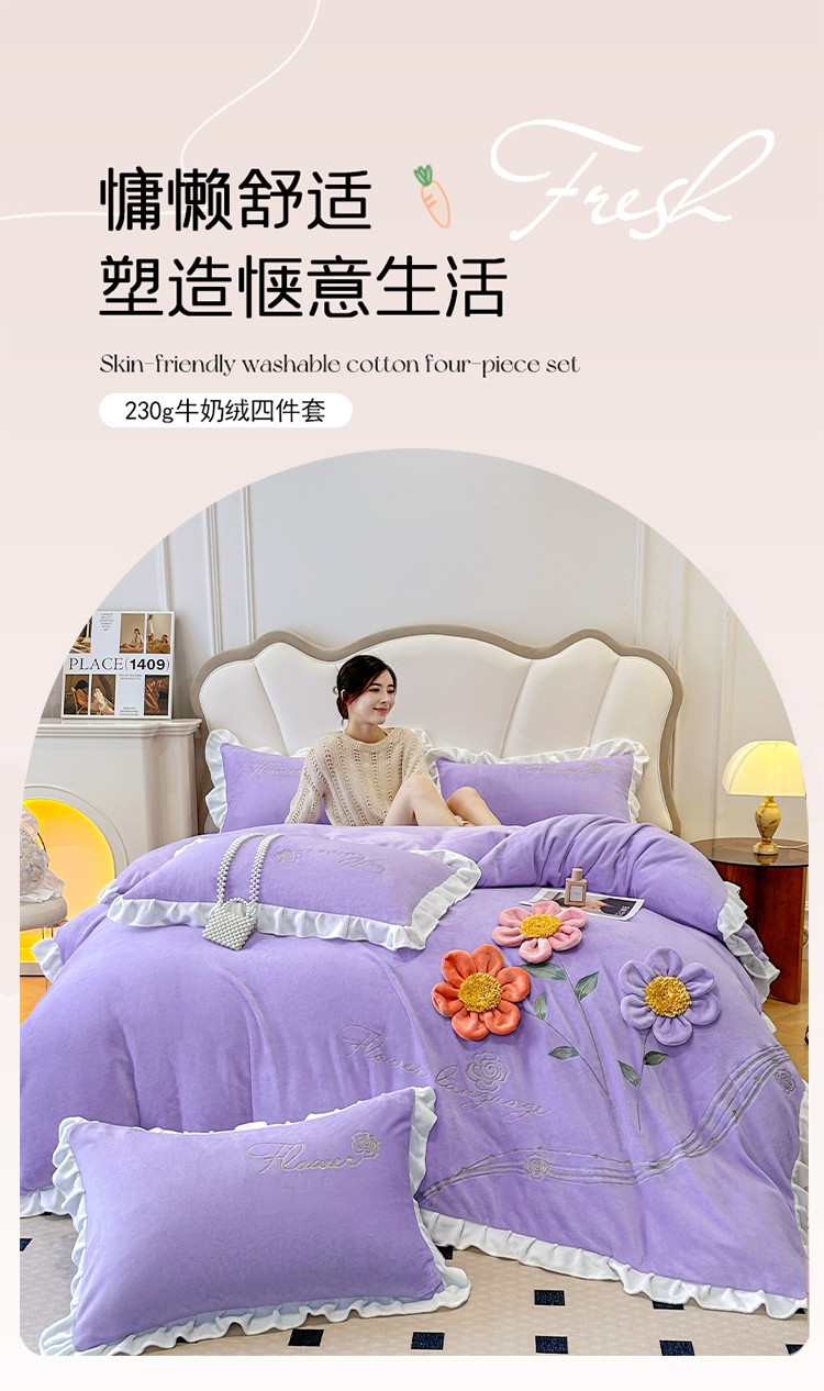 苏米娜家纺SUMINA 2025新款简约ins风A类全消光230g牛奶绒公主绒四件套床裙款被套-彩蝶系列,彩蝶-香芋紫 ,彩蝶-樱花粉,彩蝶-新芽绿