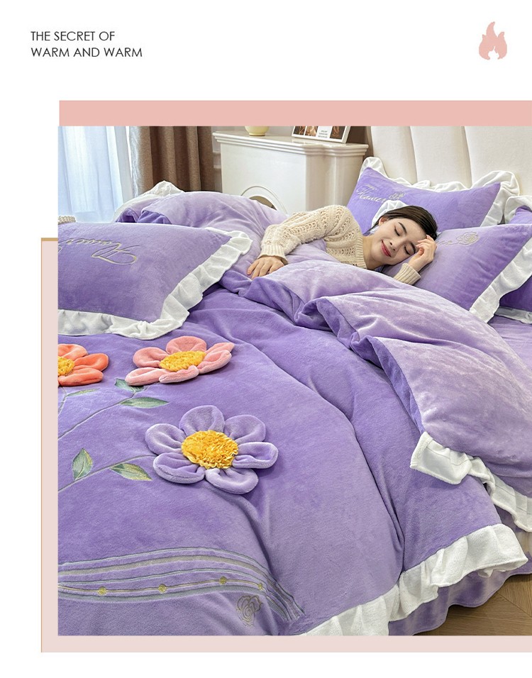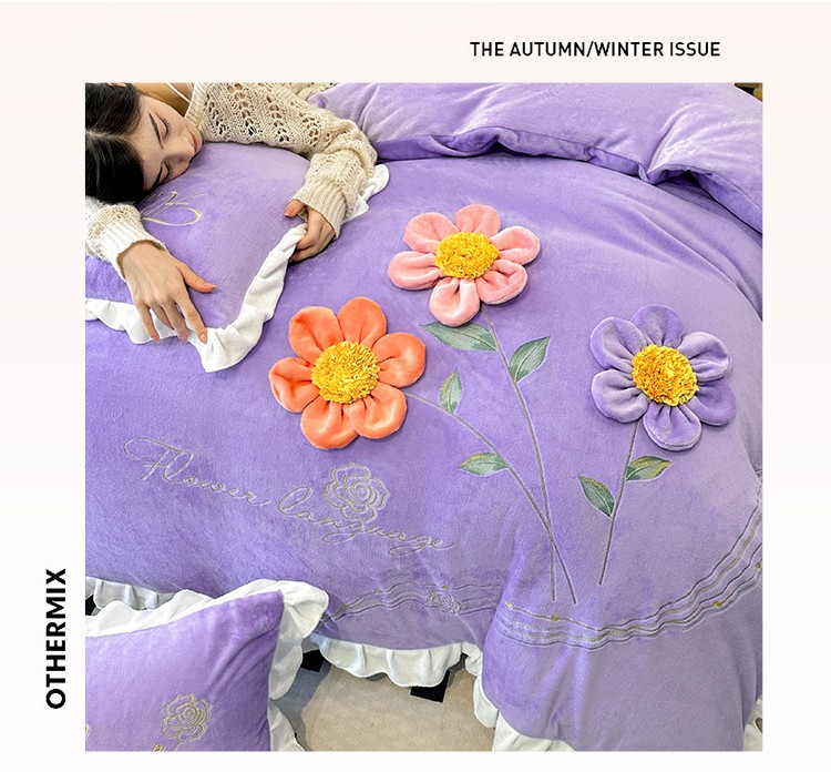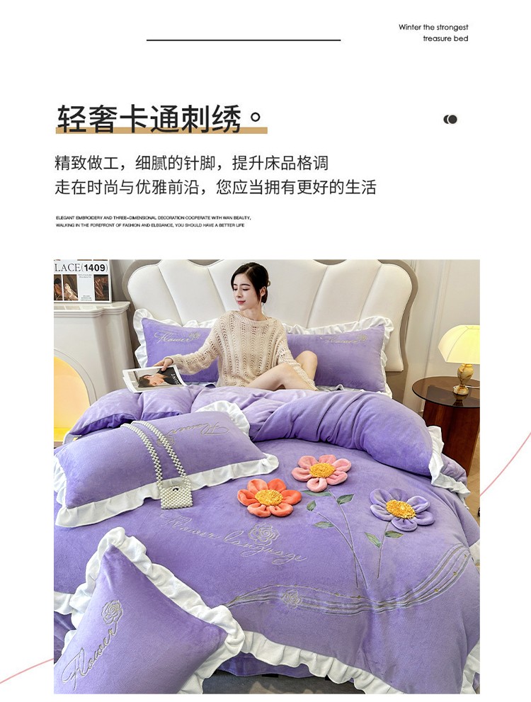 苏米娜9斤230g高克重韩版立体盘花绣花牛奶绒四件套宝宝金貂懒兔毛毛绒