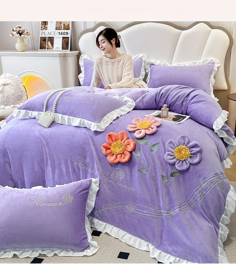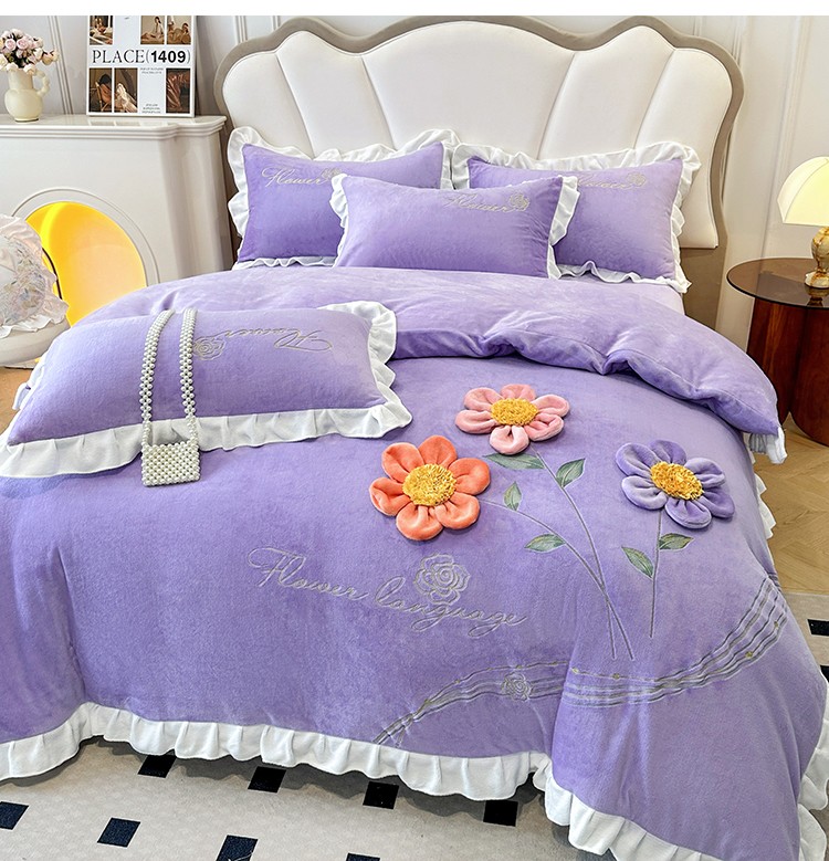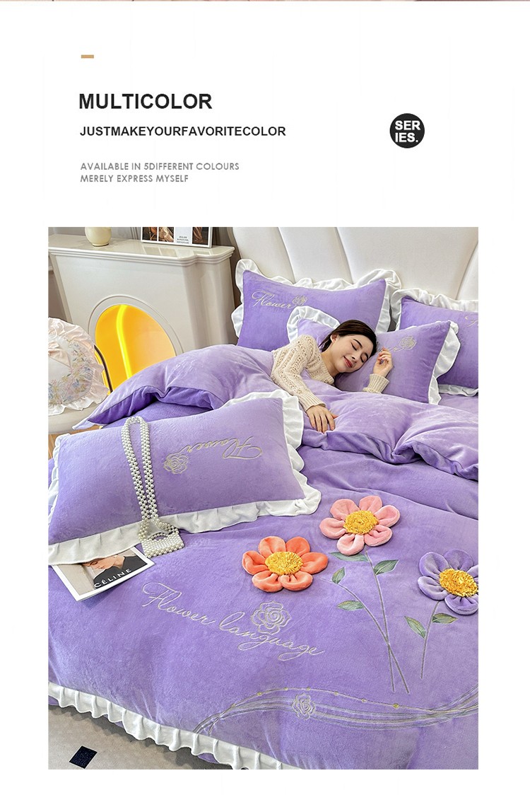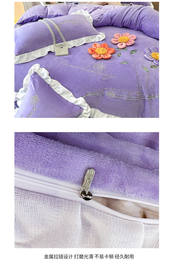 (总)苏米娜家纺SUMINA 2025新款230g高克重韩版立体盘花牛奶蚕丝绒绣花四件套床裙款被套-洛丽塔系列,洛丽塔-嫩黄 ,洛丽塔-香芋紫,洛丽塔-珍珠粉, 洛丽塔-婴儿蓝