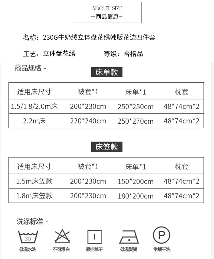 商品名称:苏米娜9斤230g高克重韩版立体盘花绣花牛奶绒四件套宝宝金貂懒兔毛毛绒