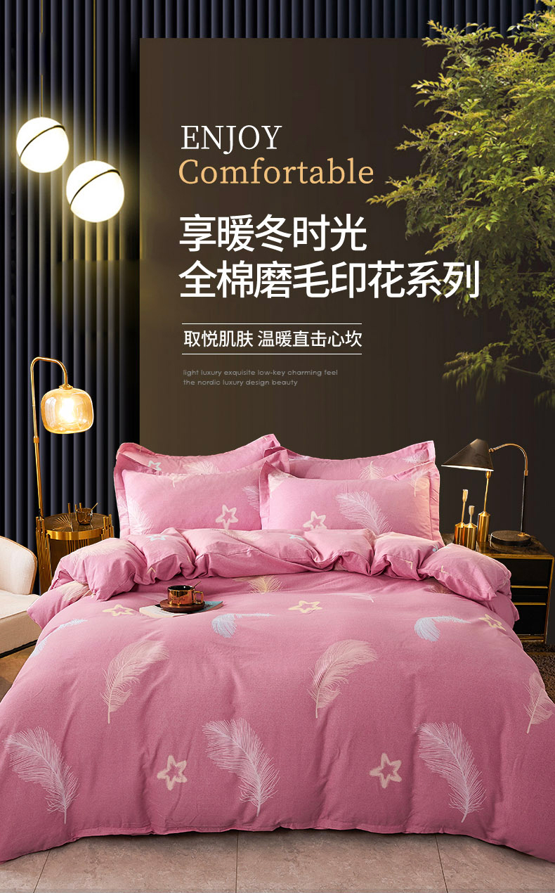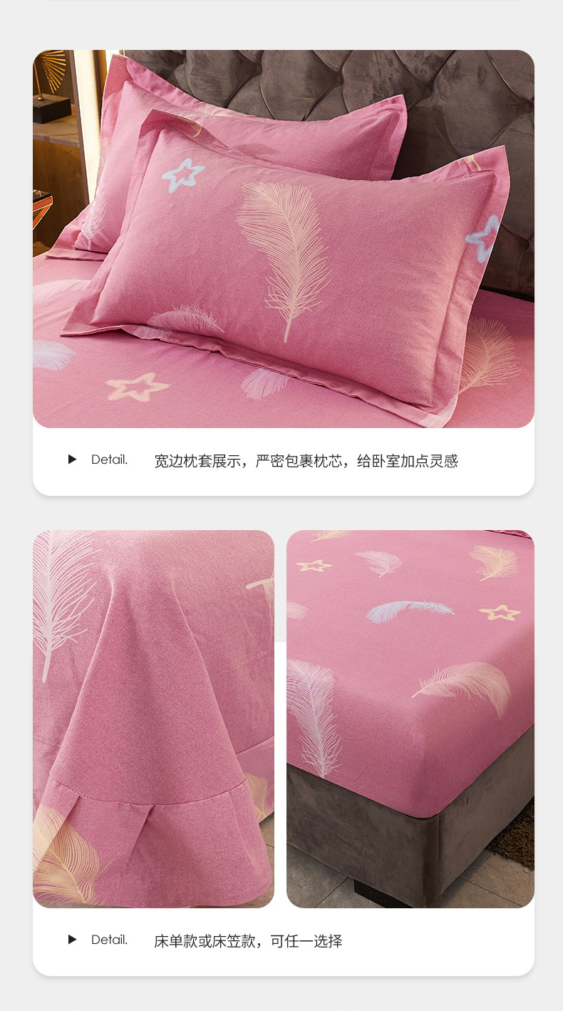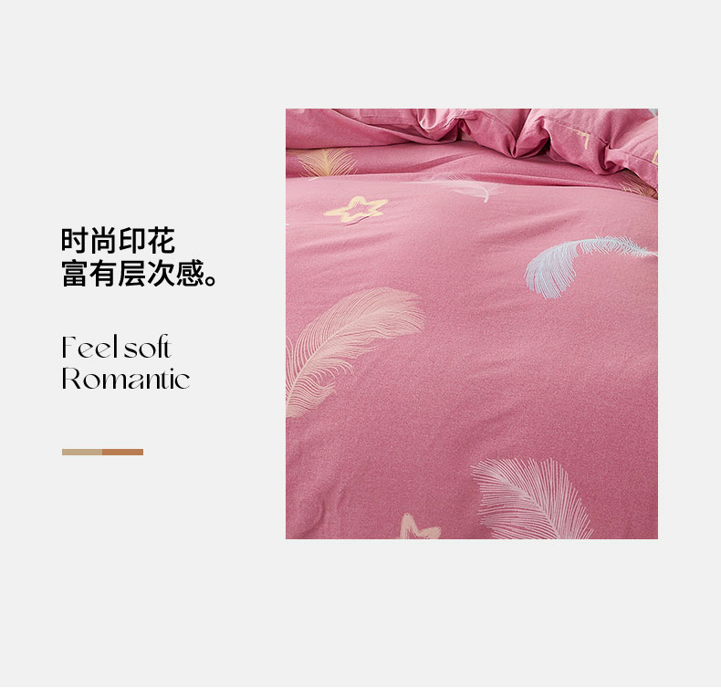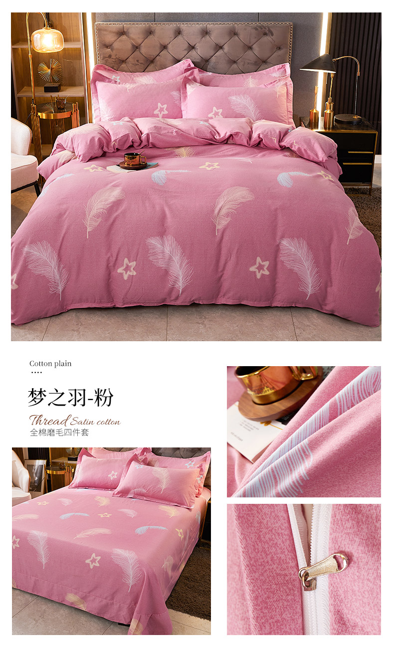 当前位置: 91家纺网 > 商品网购 > 床品套件 > 四件套 > 普通磨毛四件套 > 伊而梦 2023新款全棉磨毛印花四件套系列四件套 梦之羽-粉