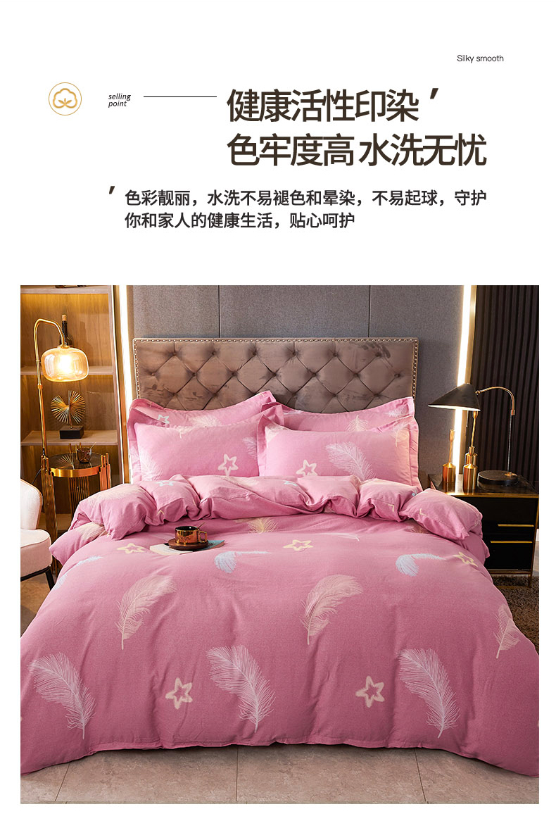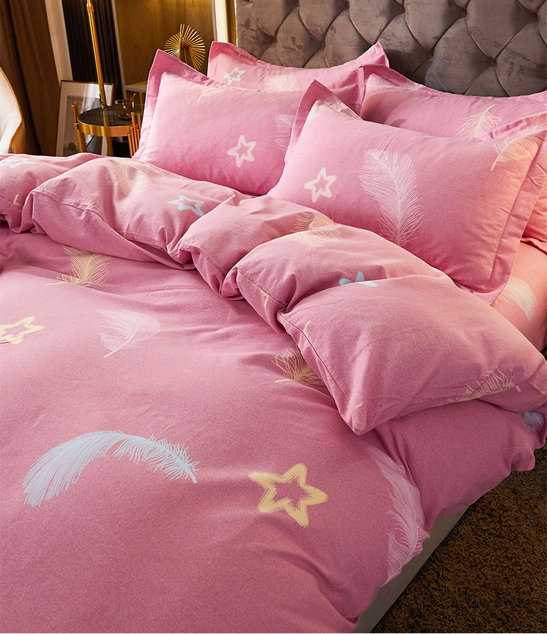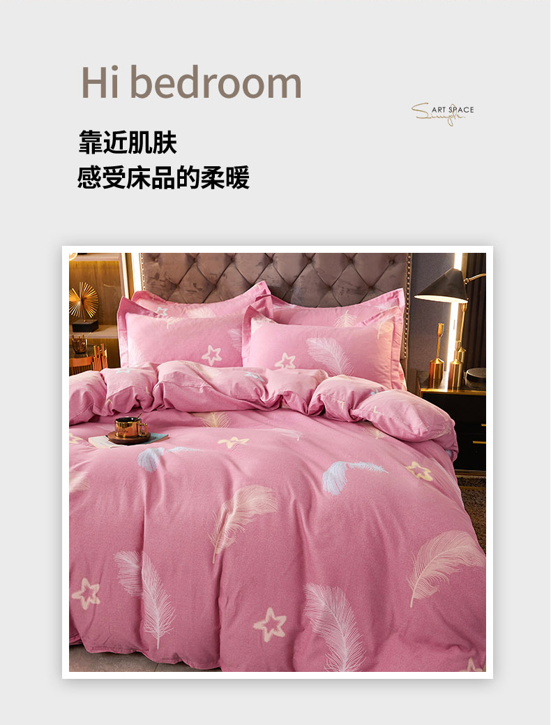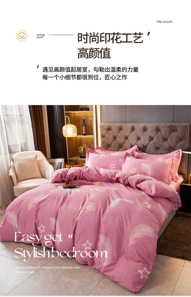 当前位置: 91家纺网 > 商品网购 > 床品套件 > 四件套 > 普通磨毛四件套 > 伊而梦 2023新款全棉磨毛印花四件套系列四件套 梦之羽-粉