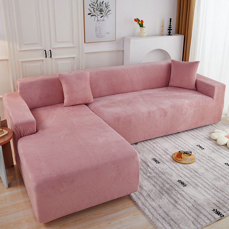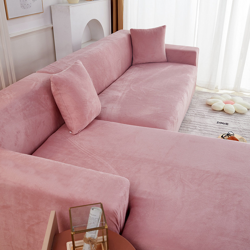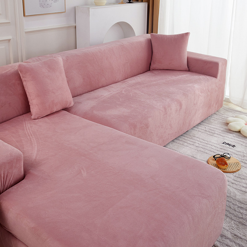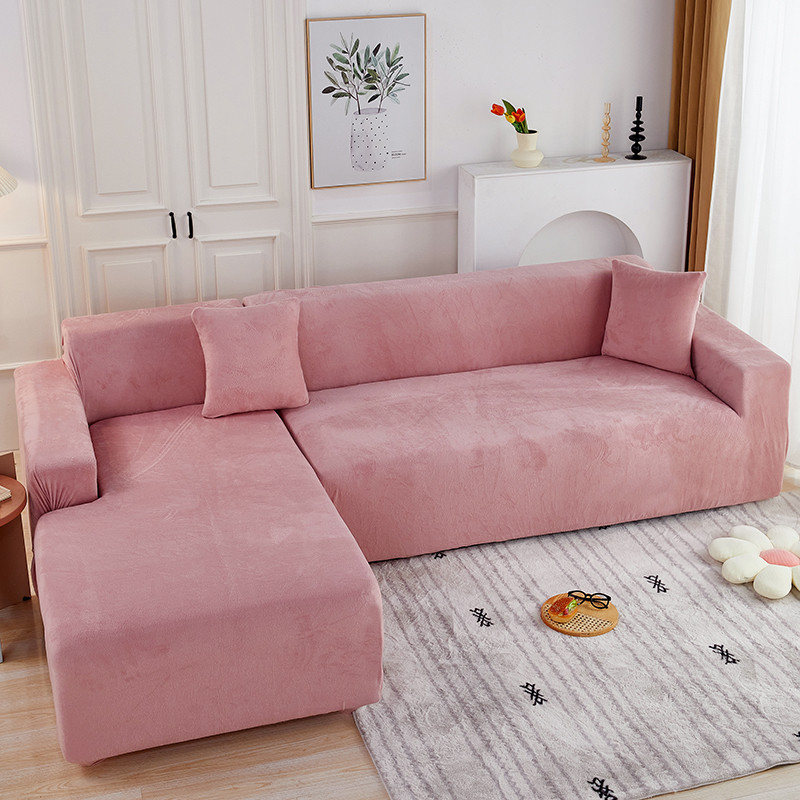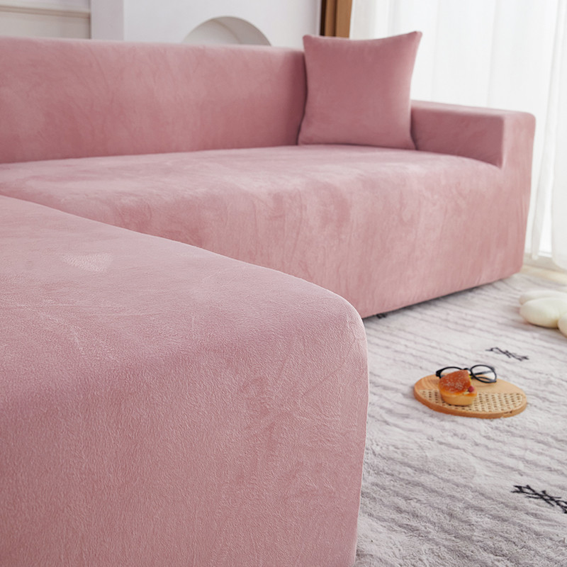 丝绮鹿 2023新款毛绒纯色沙发套贵妃位图 粉色-毛绒款