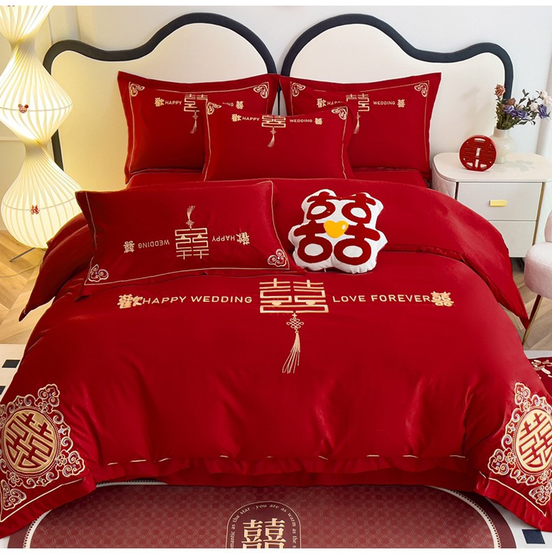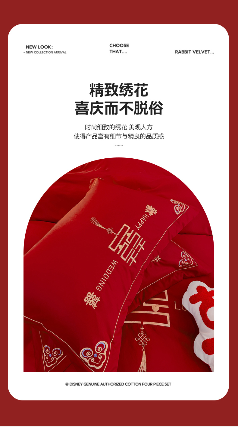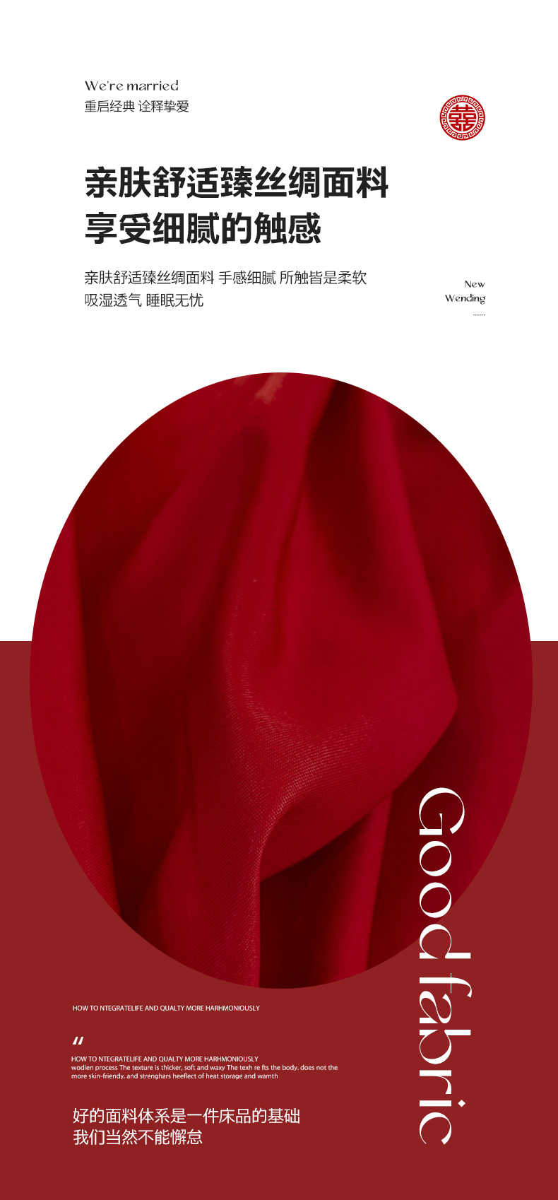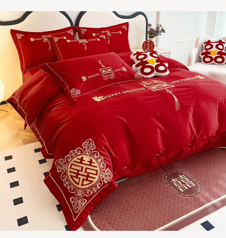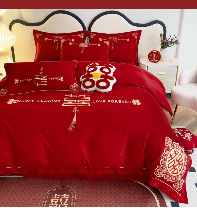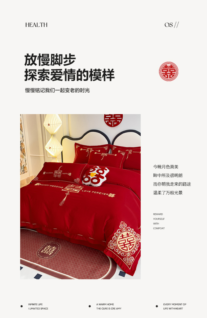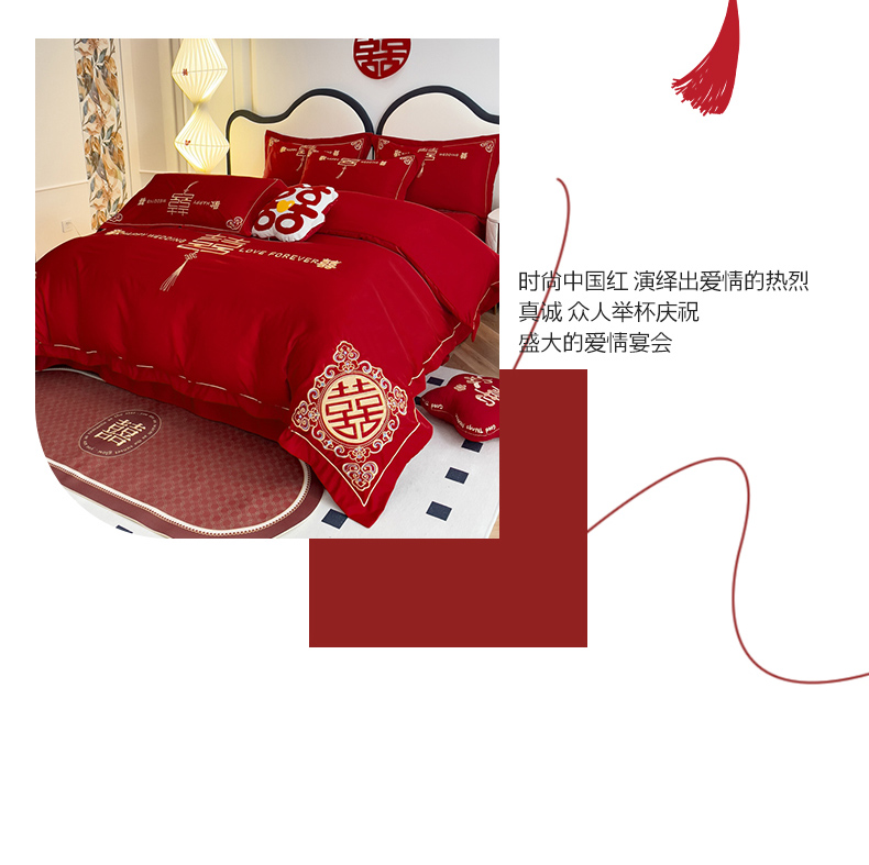 商品名称:菲儿家纺 2023新款亲肤舒适臻丝绸婚庆四件套 欢喜人家