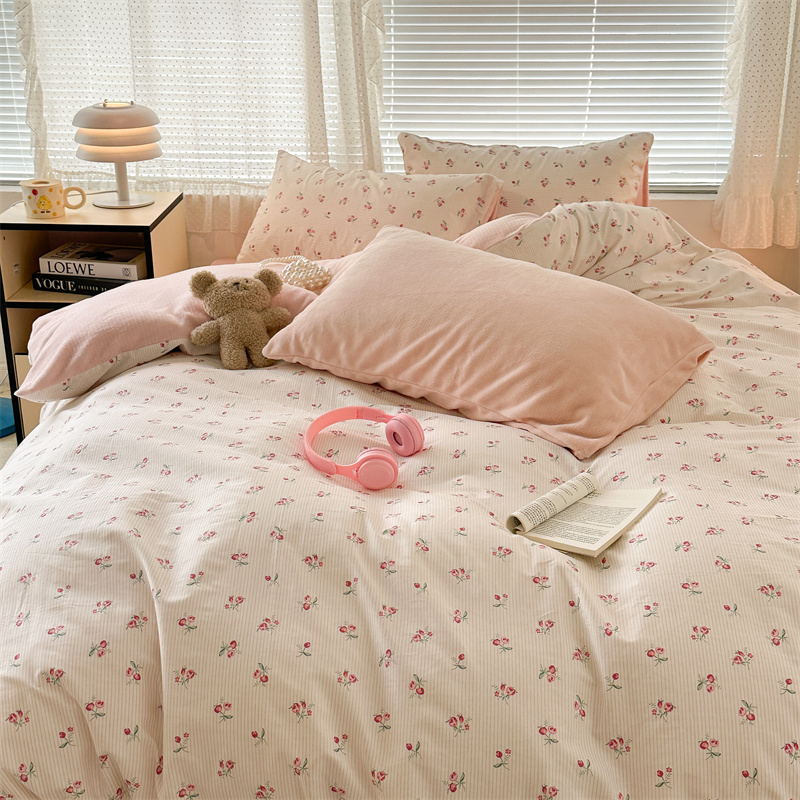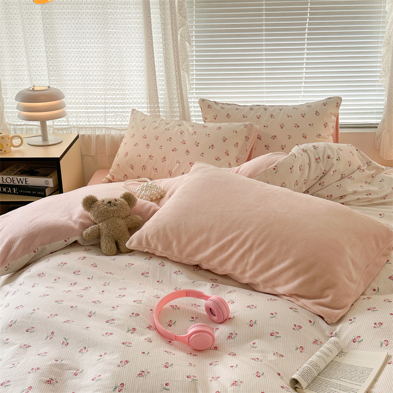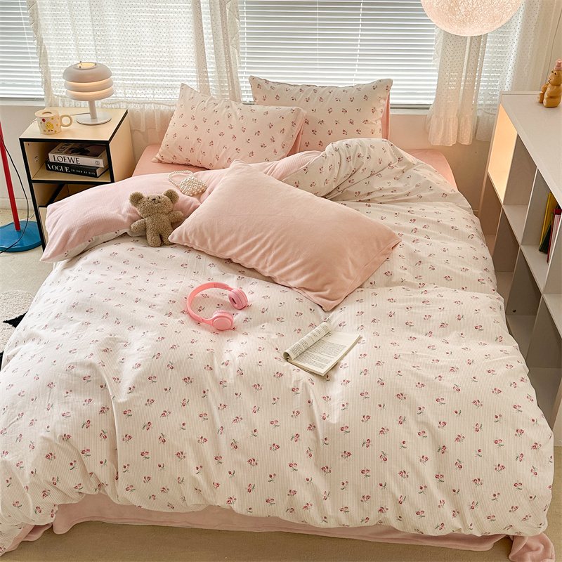 昔可家纺 2023新款全棉加绒四件套 小椿芽