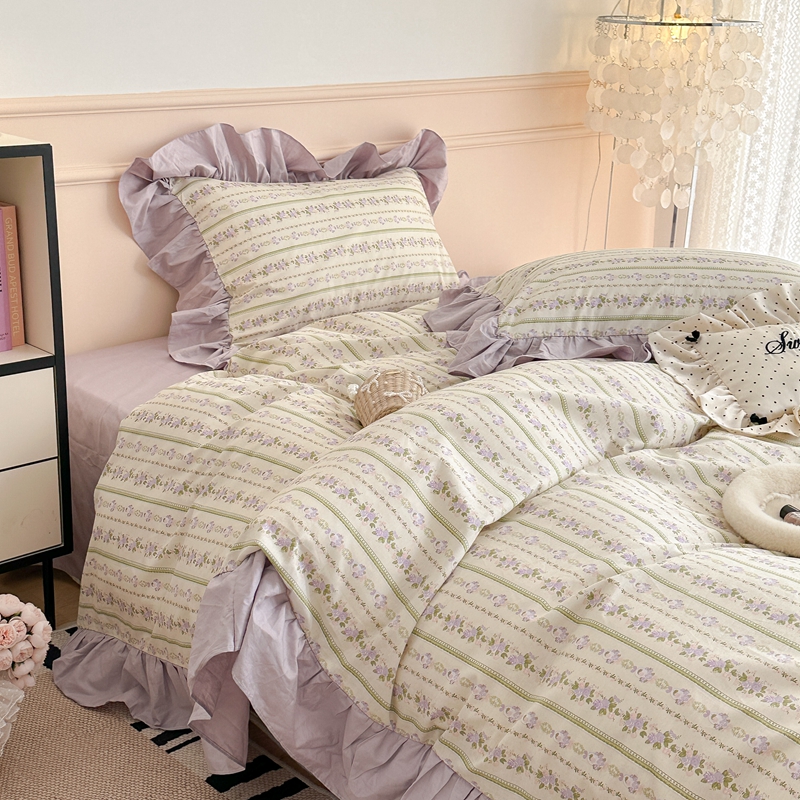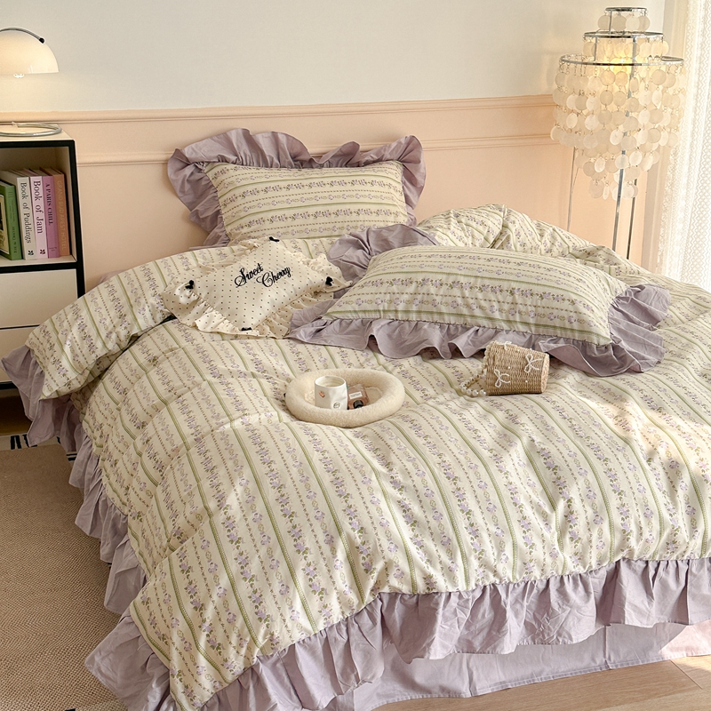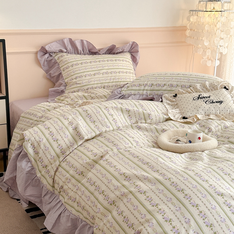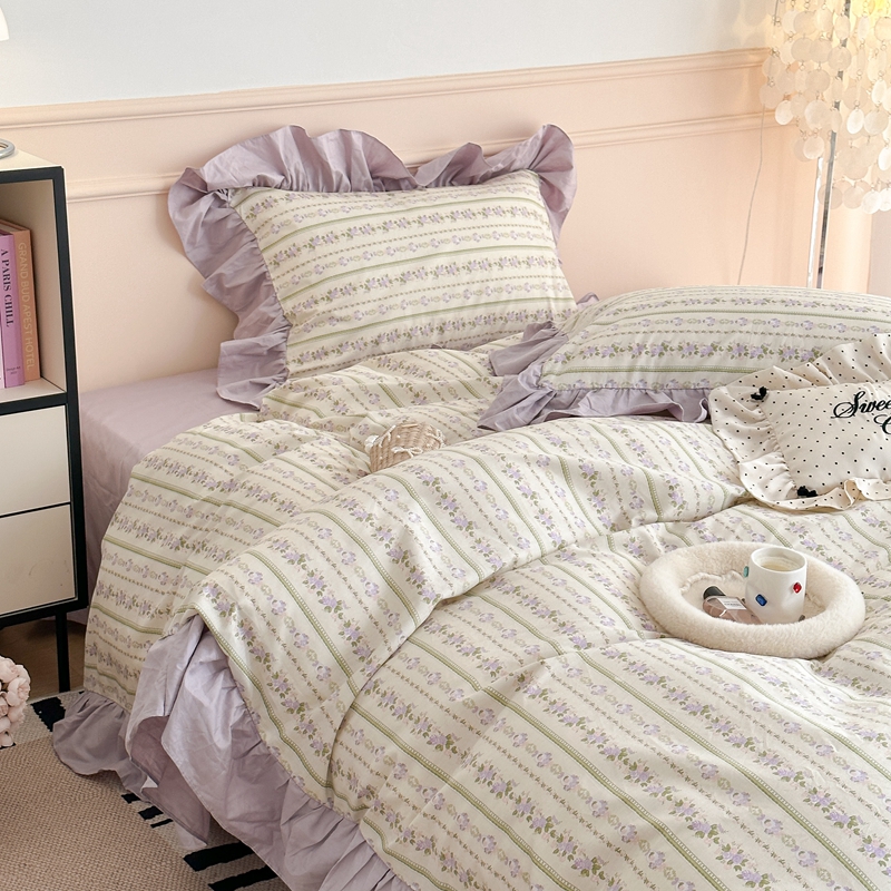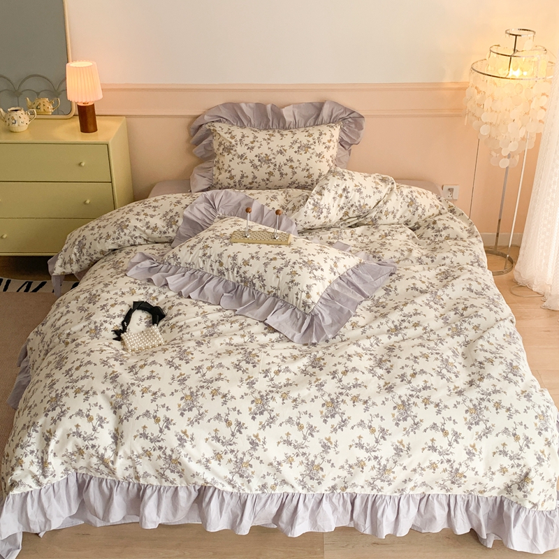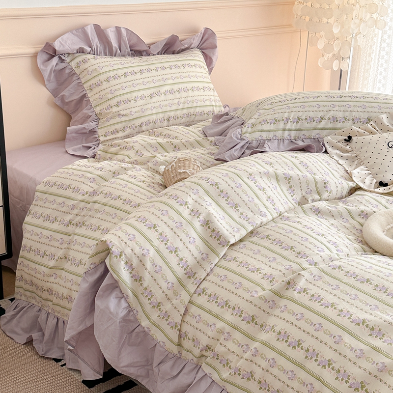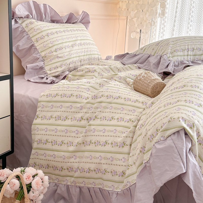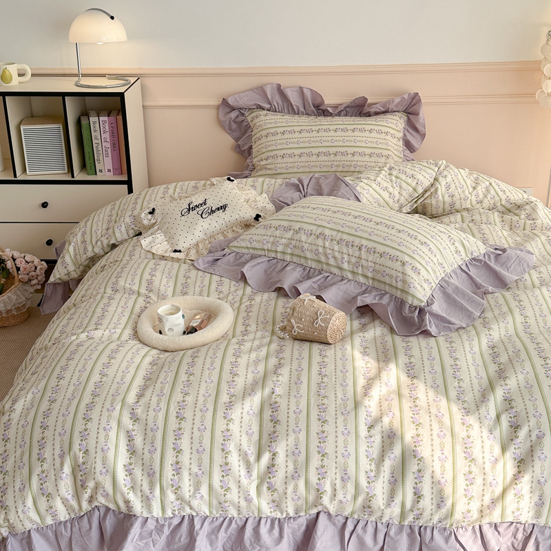 (总)昔可家纺 2023新款全棉小花系列四件套,柏林少女,小小的樱桃,紫色葡萄