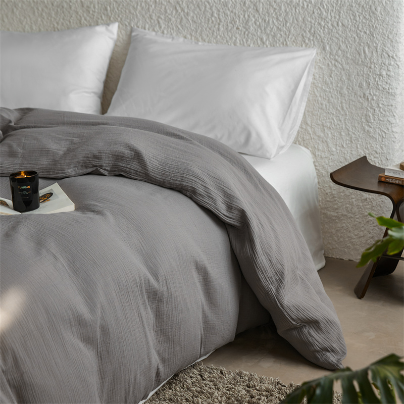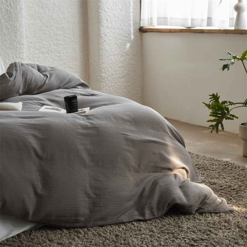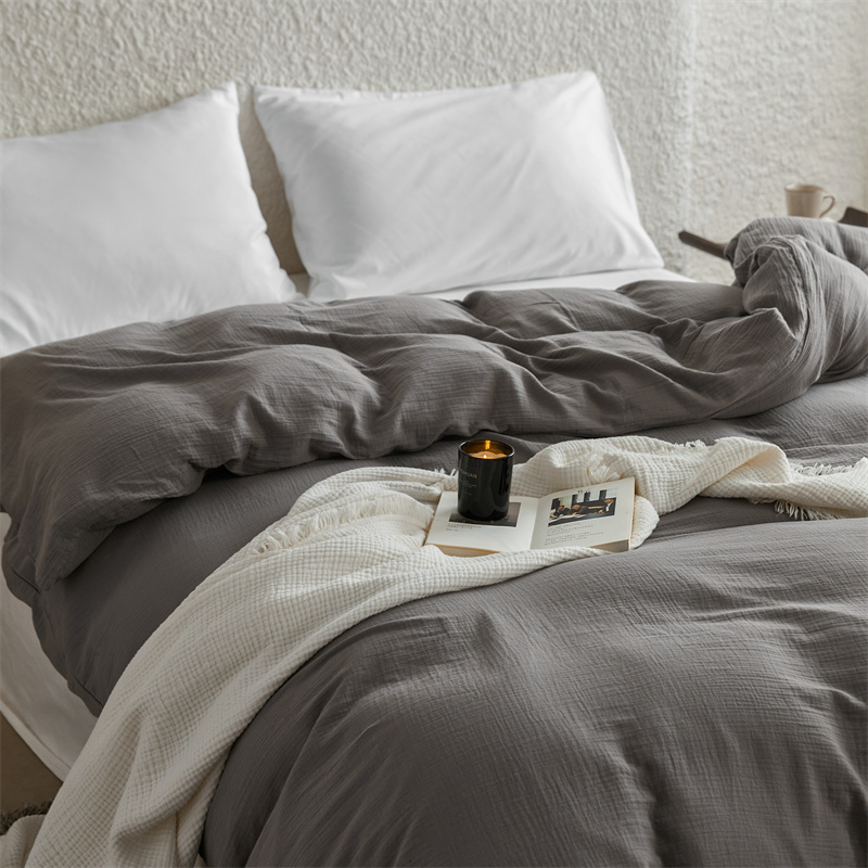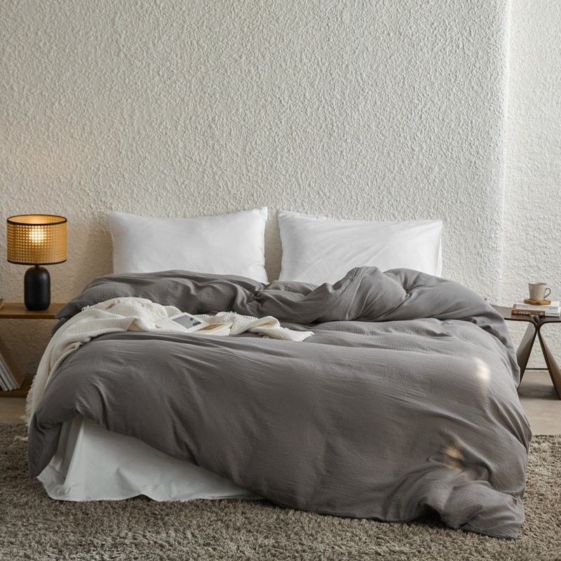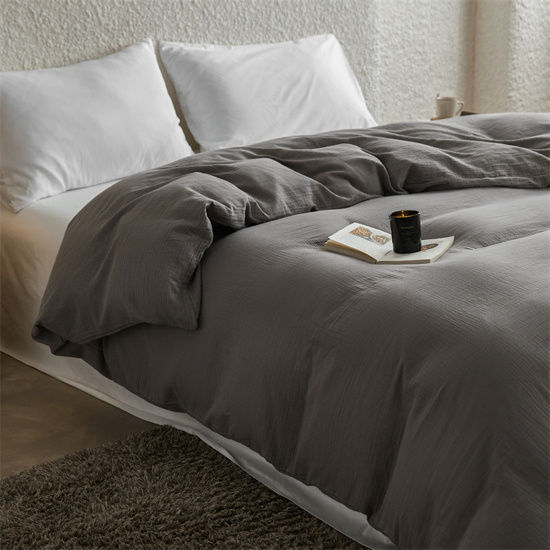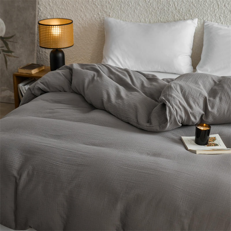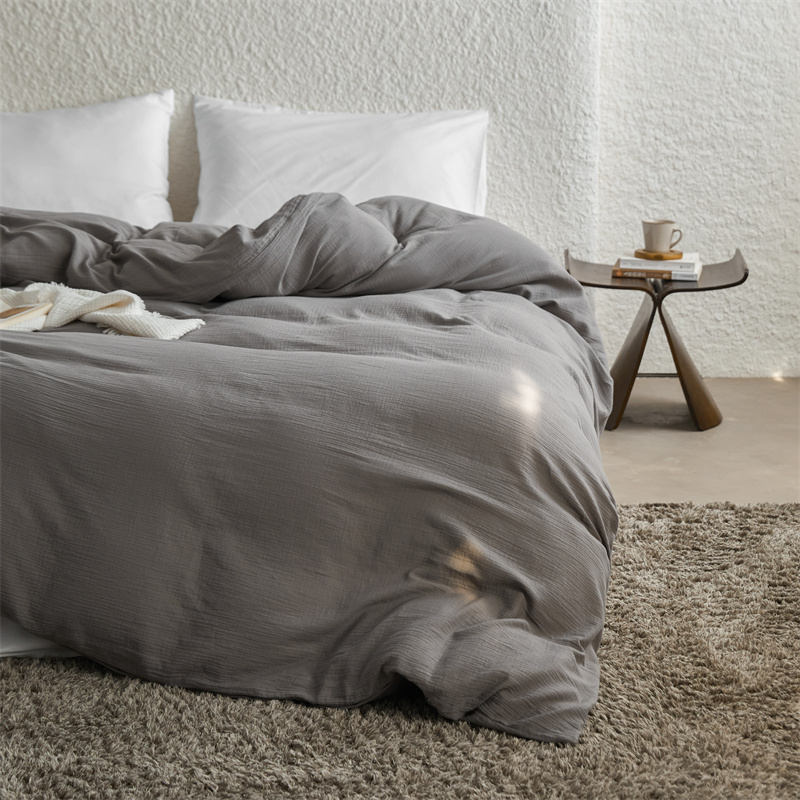 安莱生活2024新款绉纱美拉德色纯色单品被套 水泥