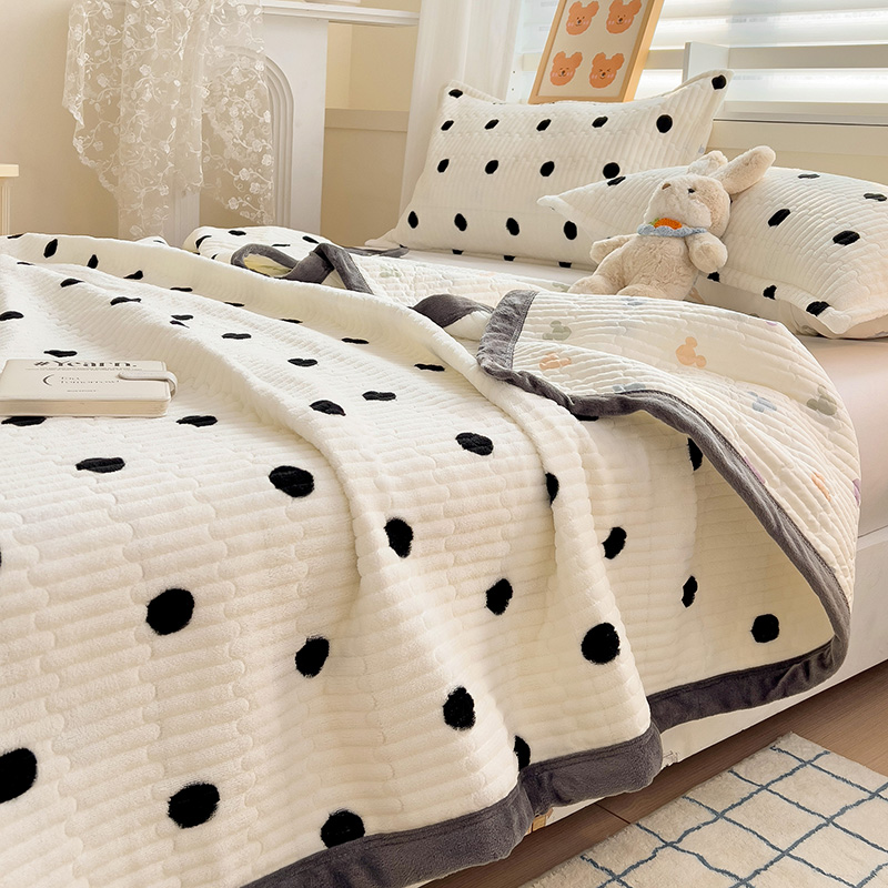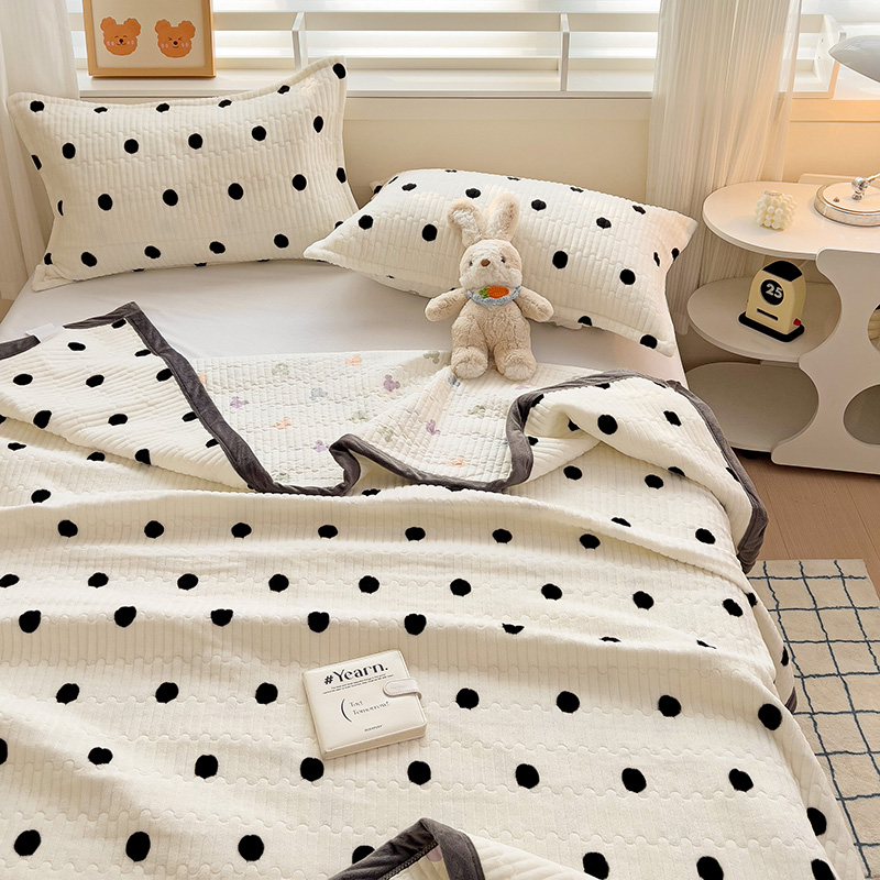 乐童 2024新款直播爆款高克重床盖 黑白圆点-床盖
