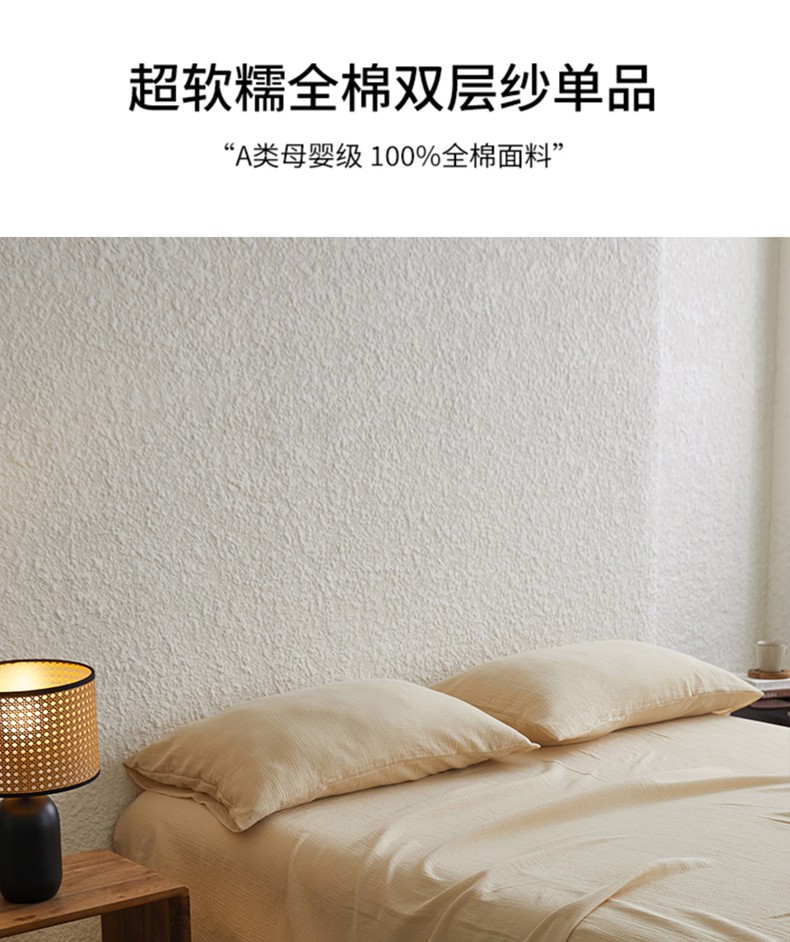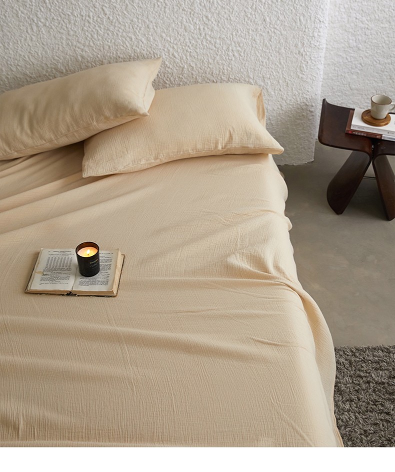 安莱生活2024新款绉纱美拉德色纯色单品床单 曲奇