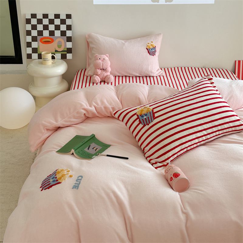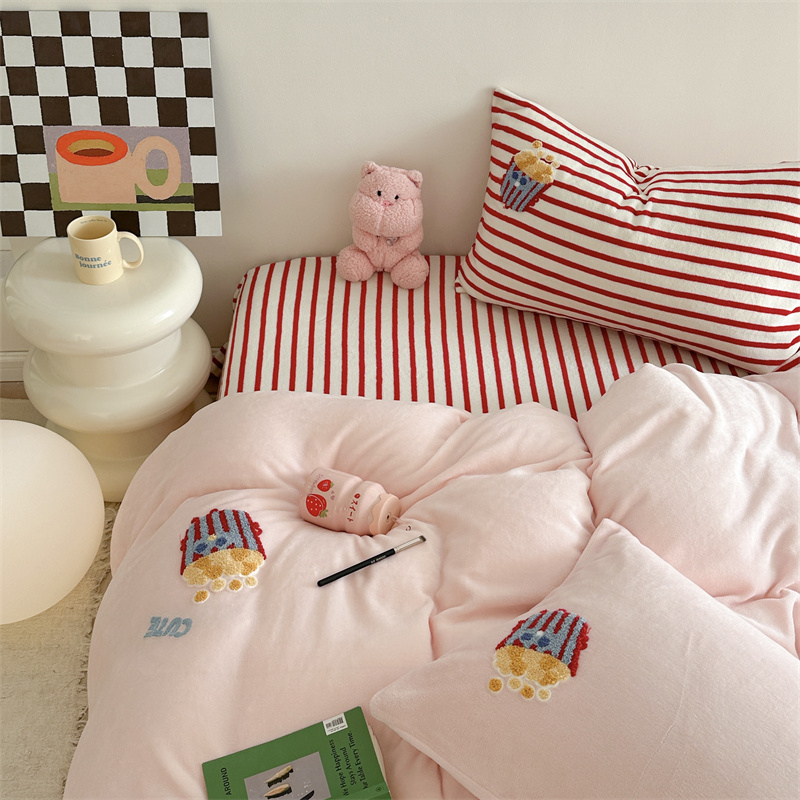 (总)柚子YOUTH 2025新款加厚牛奶绒卡通毛巾绣四件套-印加绣送同款毛毯,蛋糕小狗,公主猫,头套猫,兔兔花园,小伙伴,雪纳瑞
