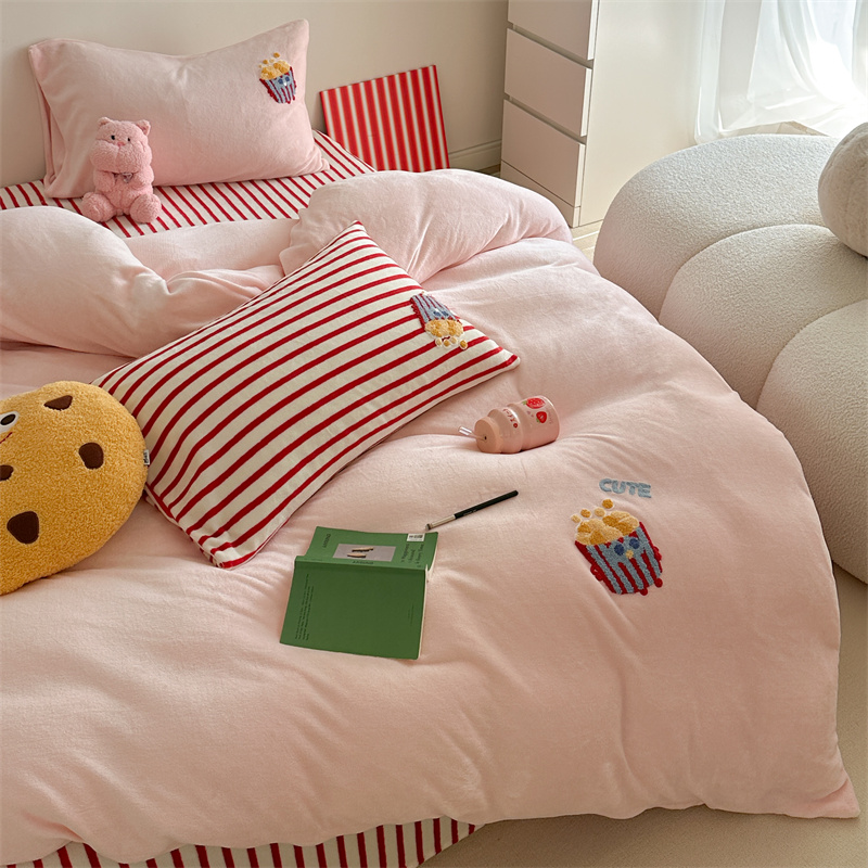 (总)柚子YOUTH 2025新款双面泰迪绒毛巾绣四件套,甜甜圈,快乐企鹅,森林聚会,甜酷KT,小茄子,雪人王国