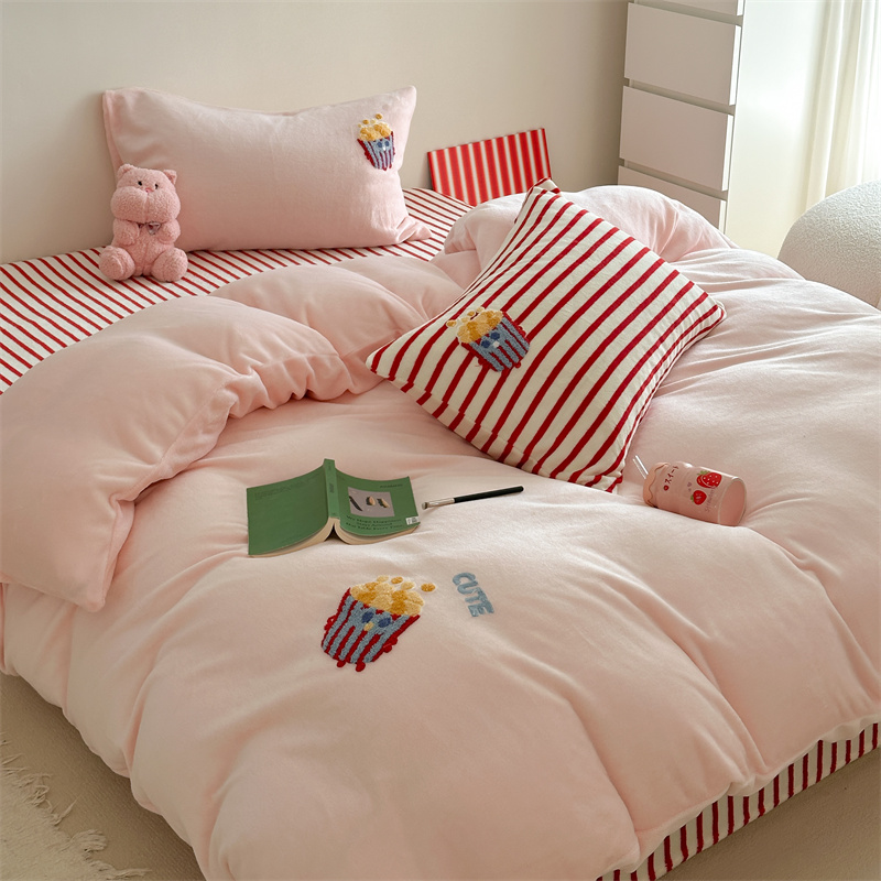 柚子YOUTH 2023新款高克重牛奶绒毛巾绣四件套 爆米花