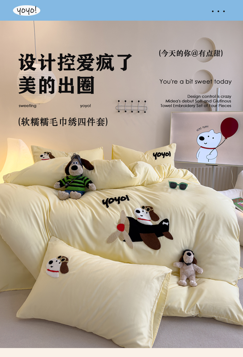 当前位置: 91家纺网 > 商品网购 > 床品套件 > 四件套 > 毛巾绣四件套 > 曼谷家纺 新款毛巾绣四件套小狗图案柔软磨毛床上用品水洗棉套件 飞行员-芝士
