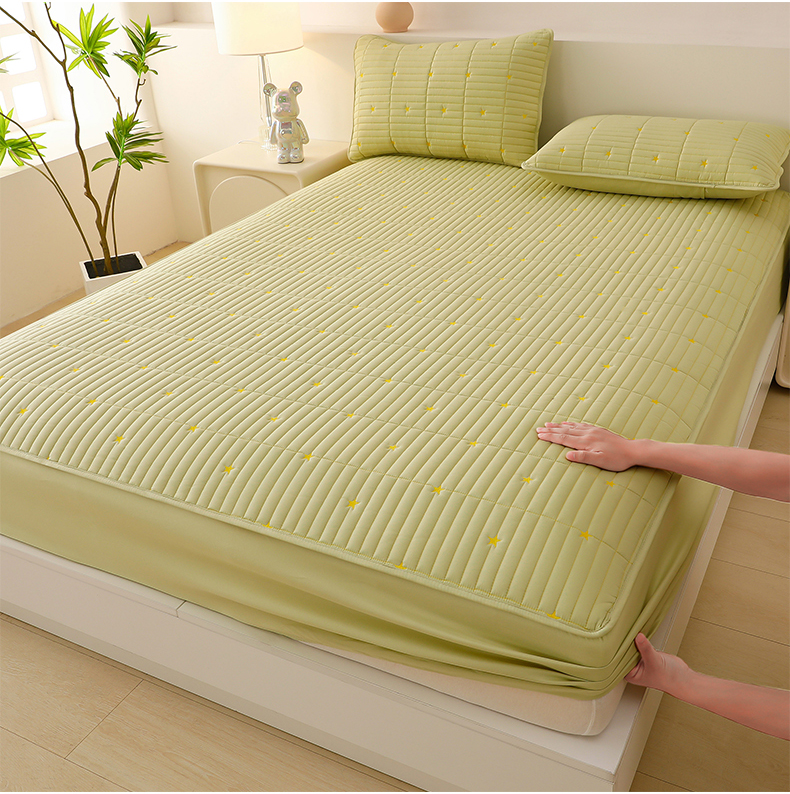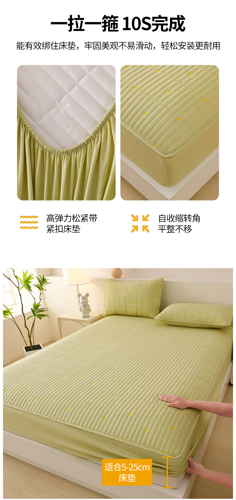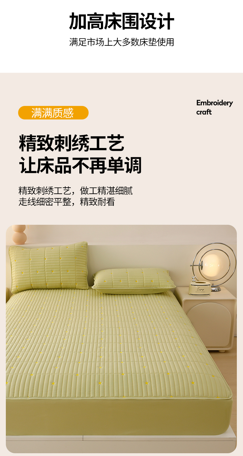 丝涟家居 2025新款A类水洗亲肤棉刺绣防水防污床笠--星河 星河-豆绿