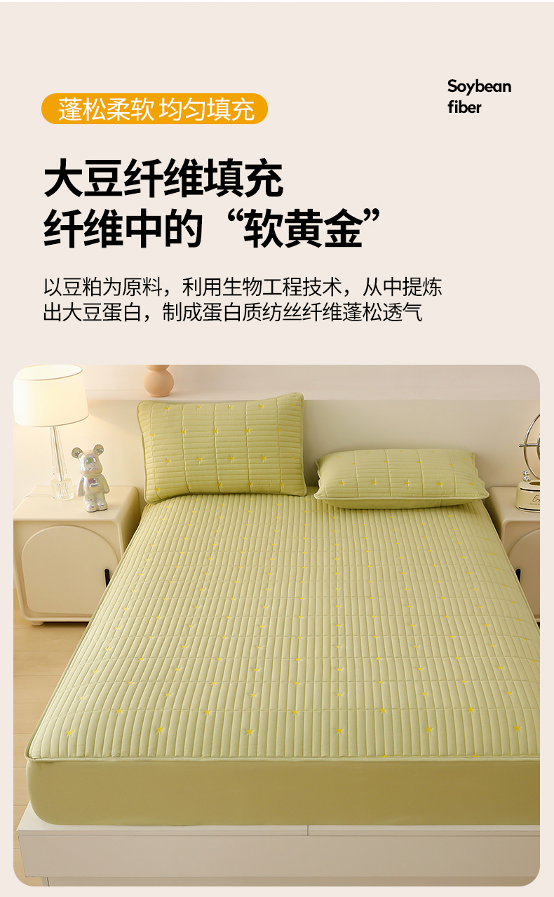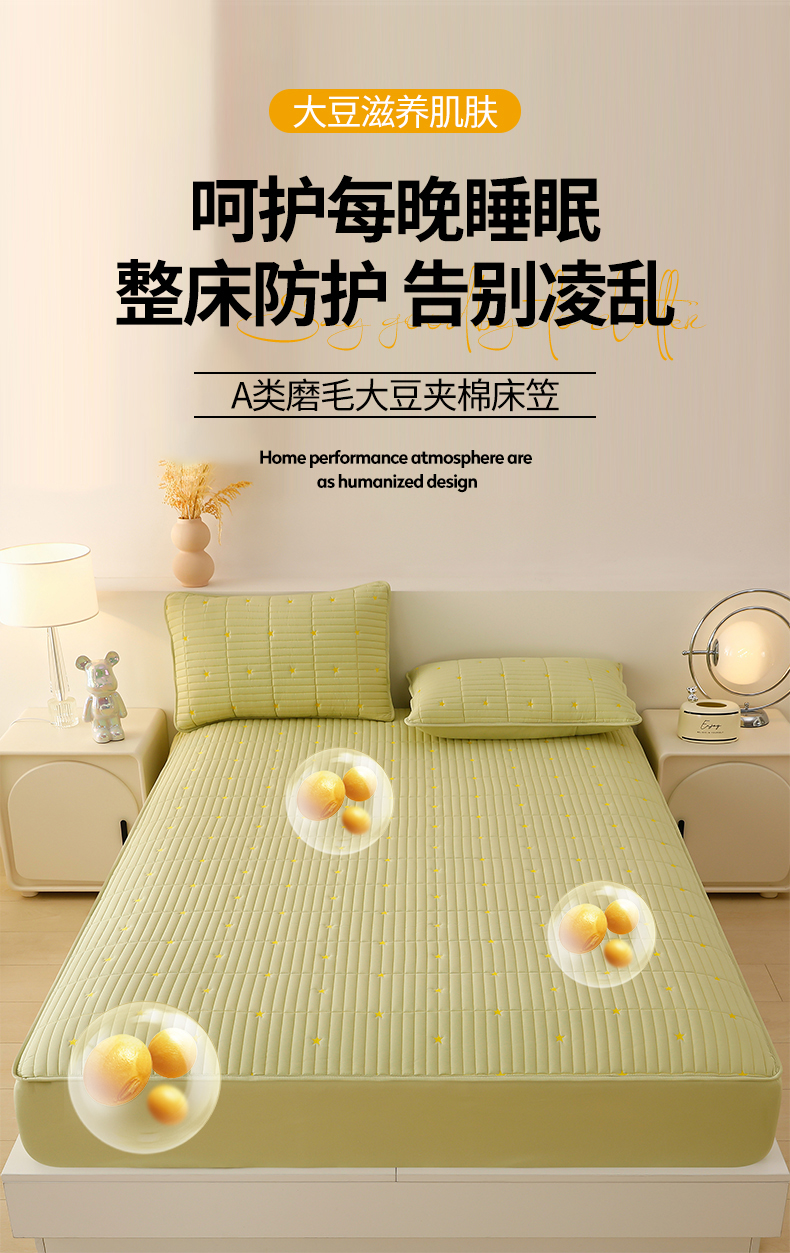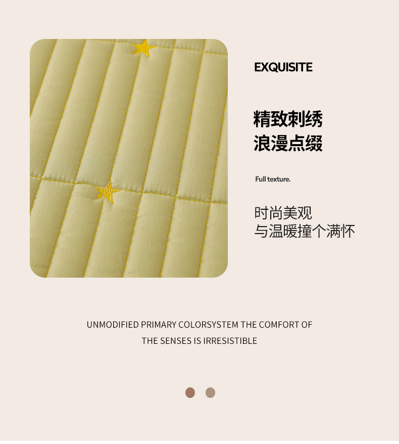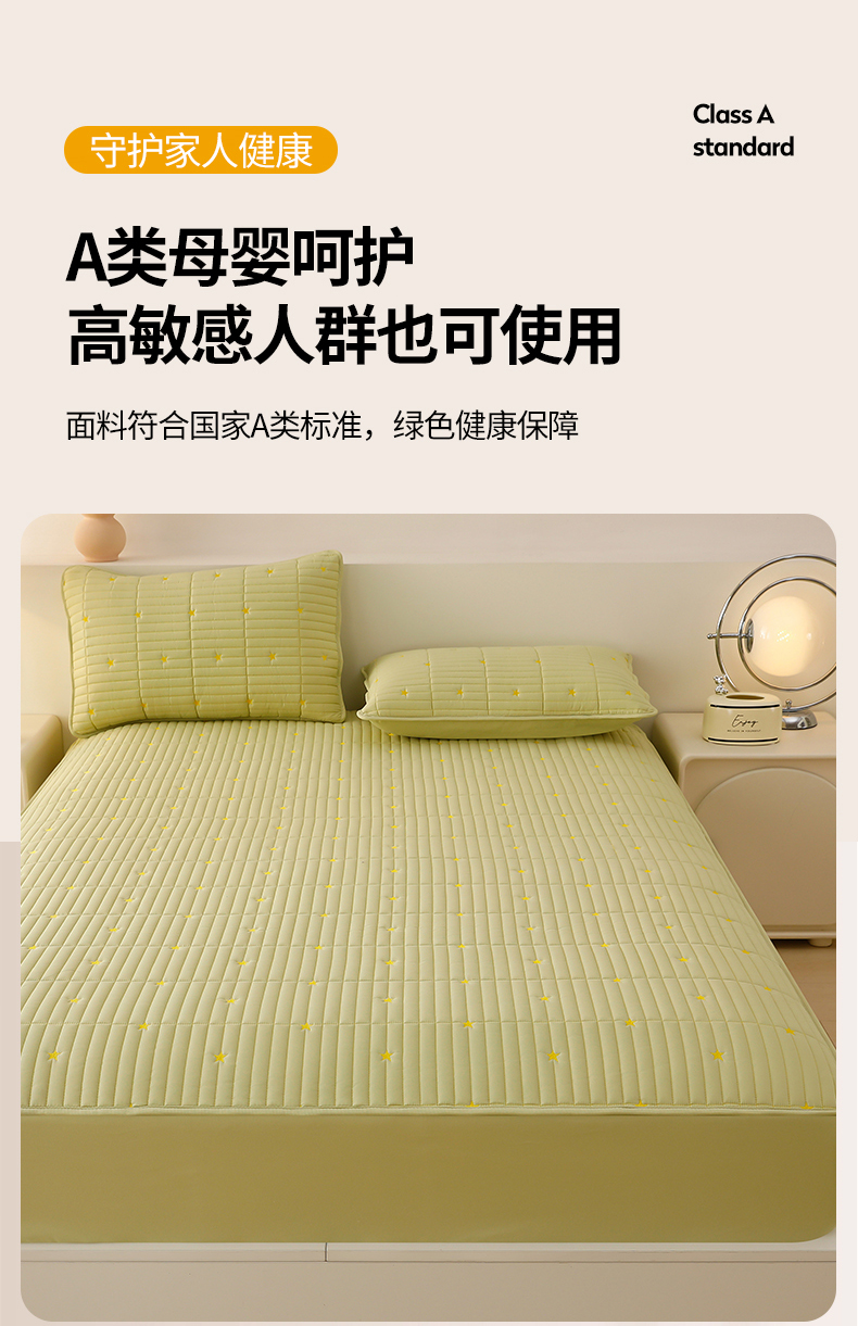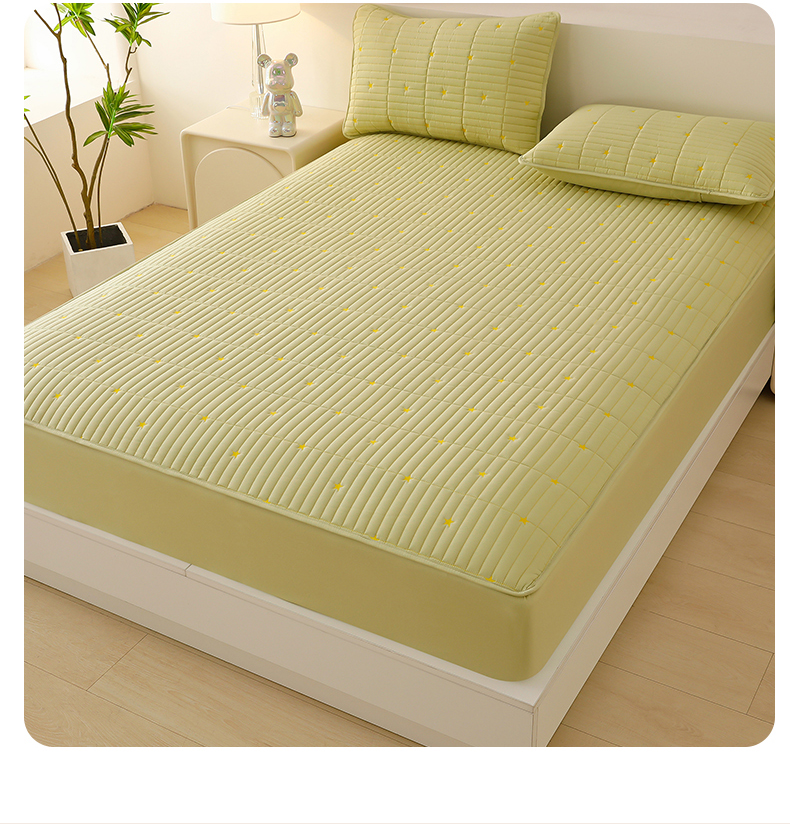 • 91家纺网 家纺一手货源 找家纺 丝涟家居 2025新款A类水洗亲肤棉刺绣防水防污床笠--星河 星河-豆绿