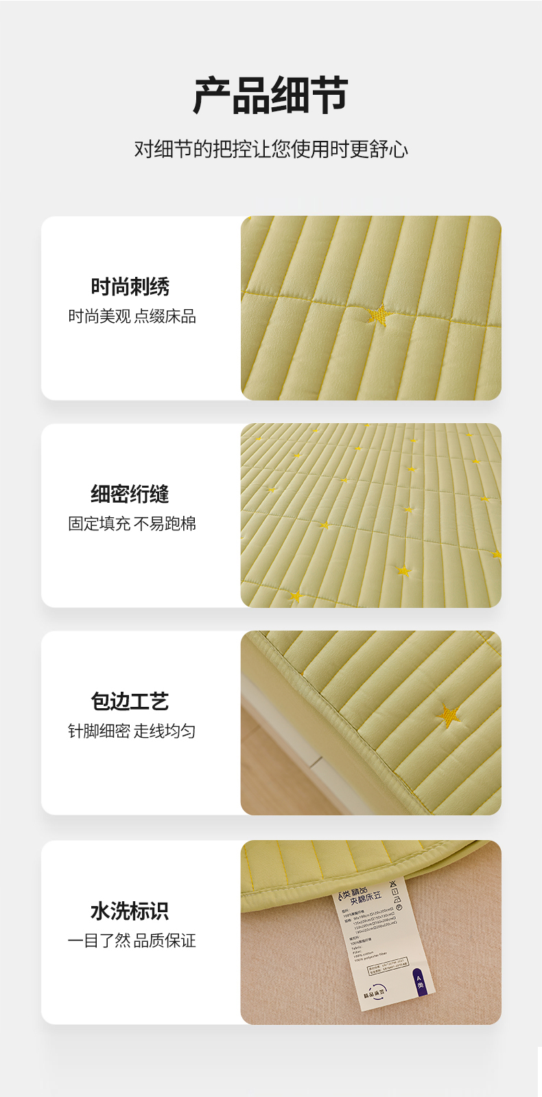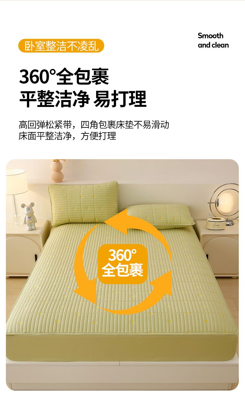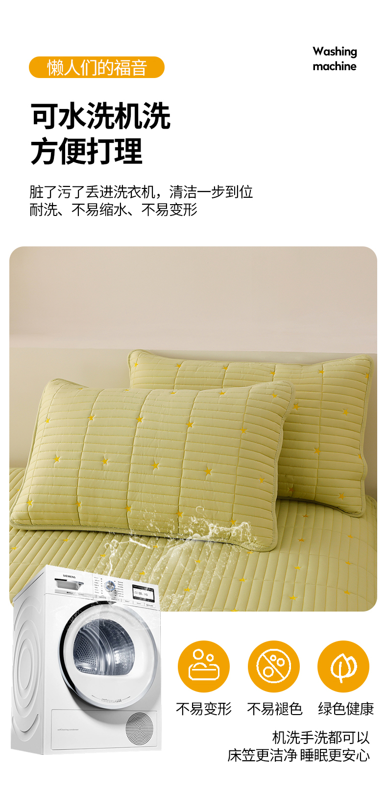 • 91家纺网 家纺一手货源 找家纺 丝涟家居 2025新款A类水洗亲肤棉刺绣防水防污床笠--星河 星河-豆绿