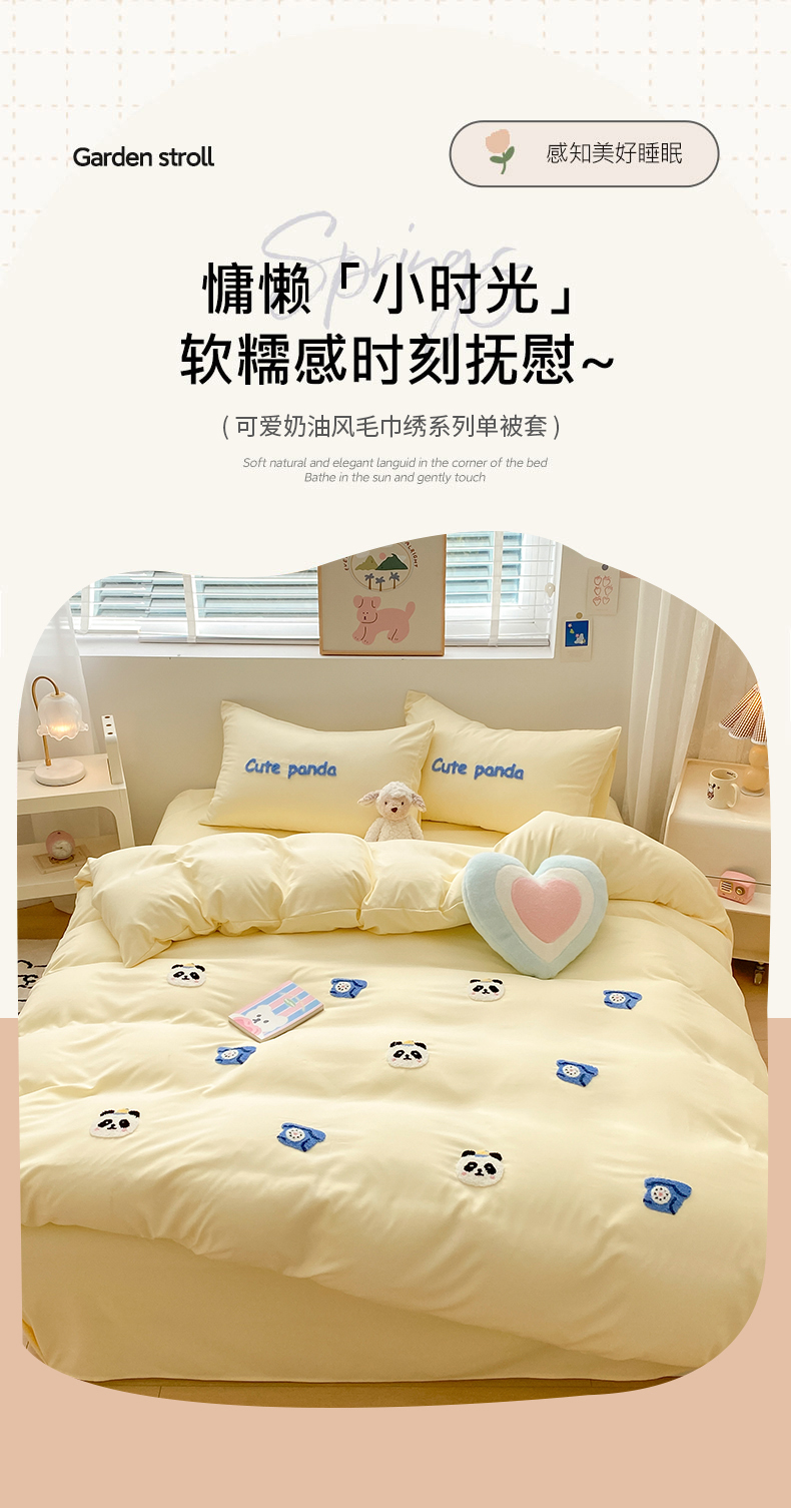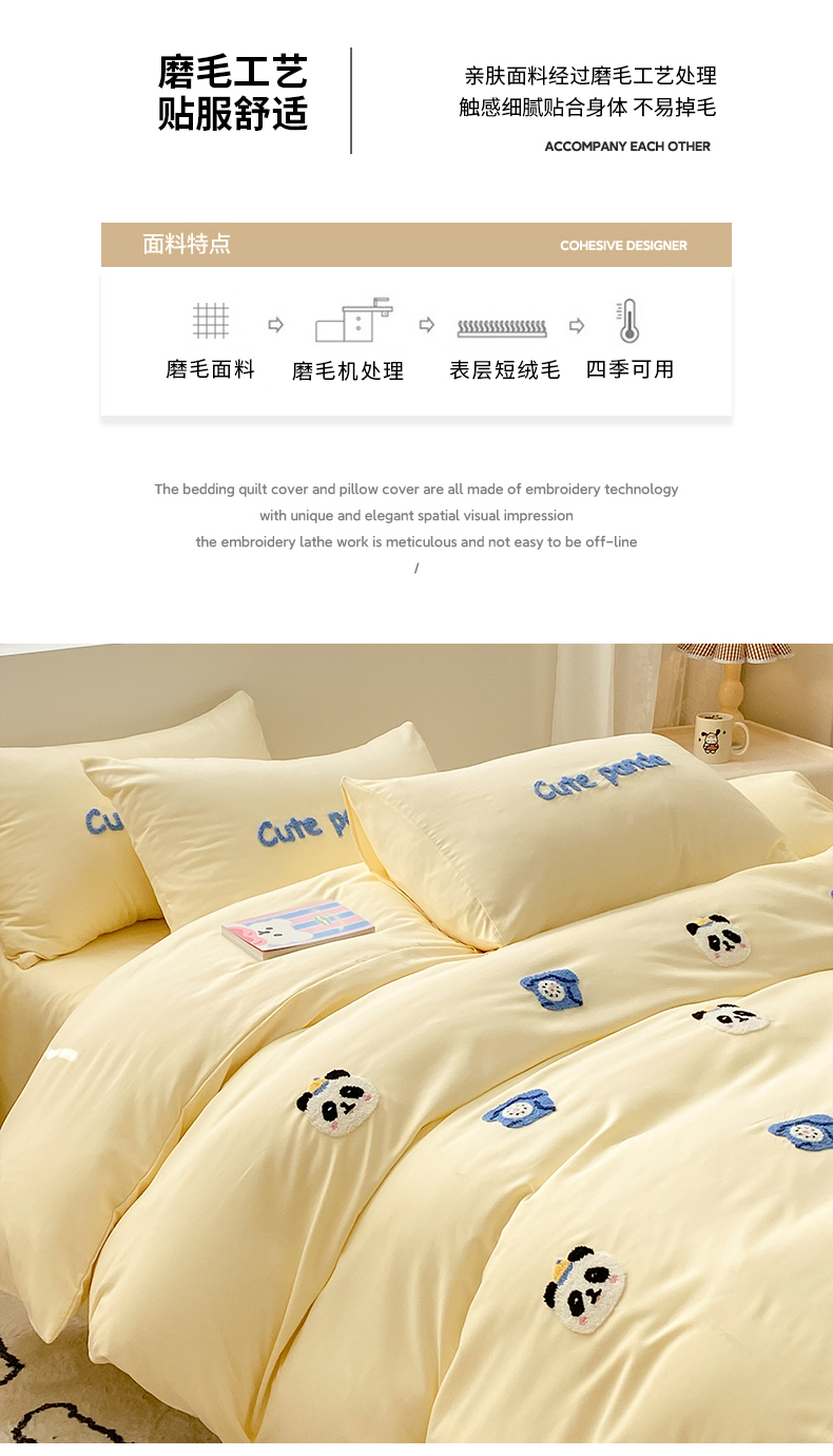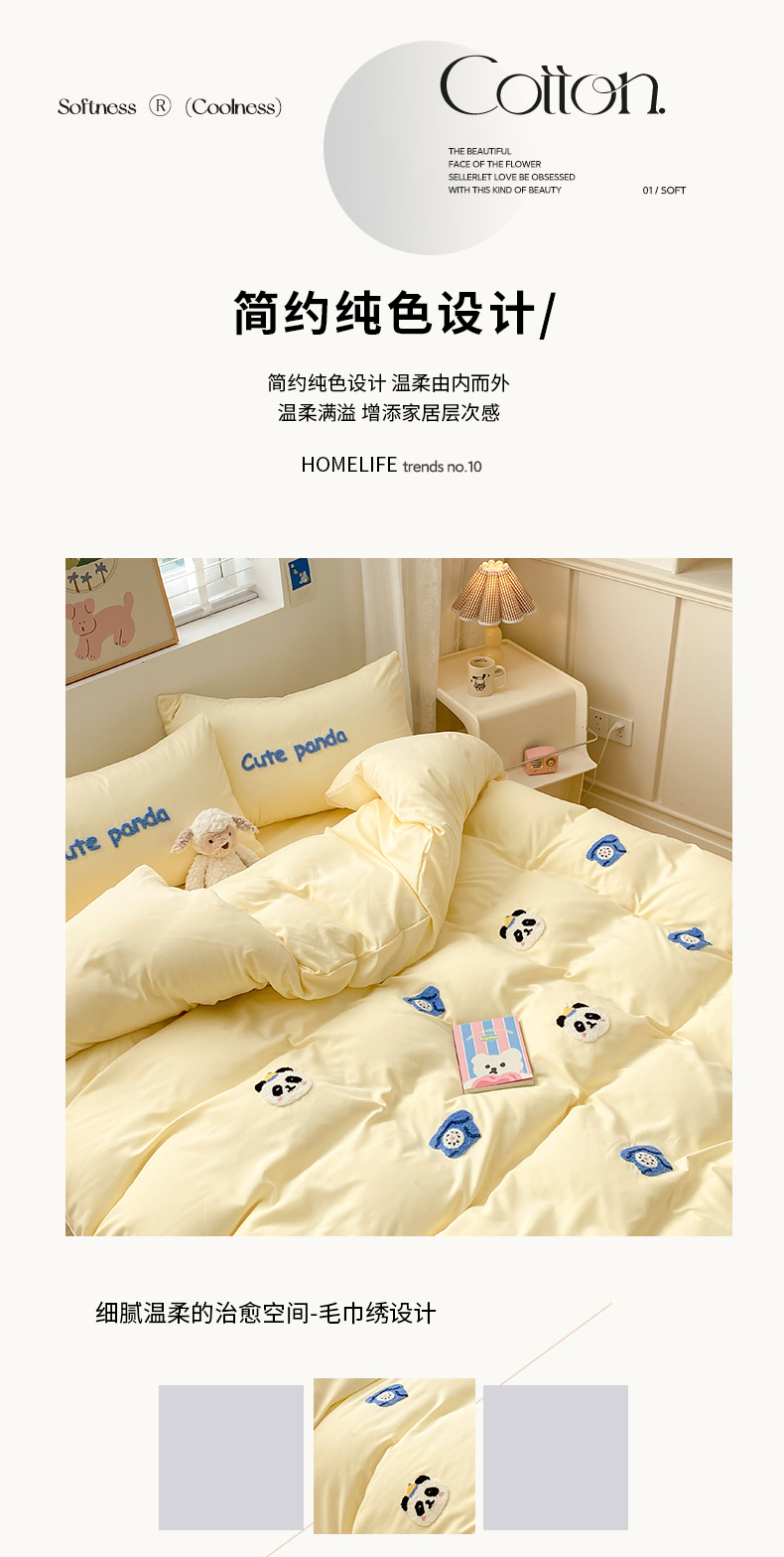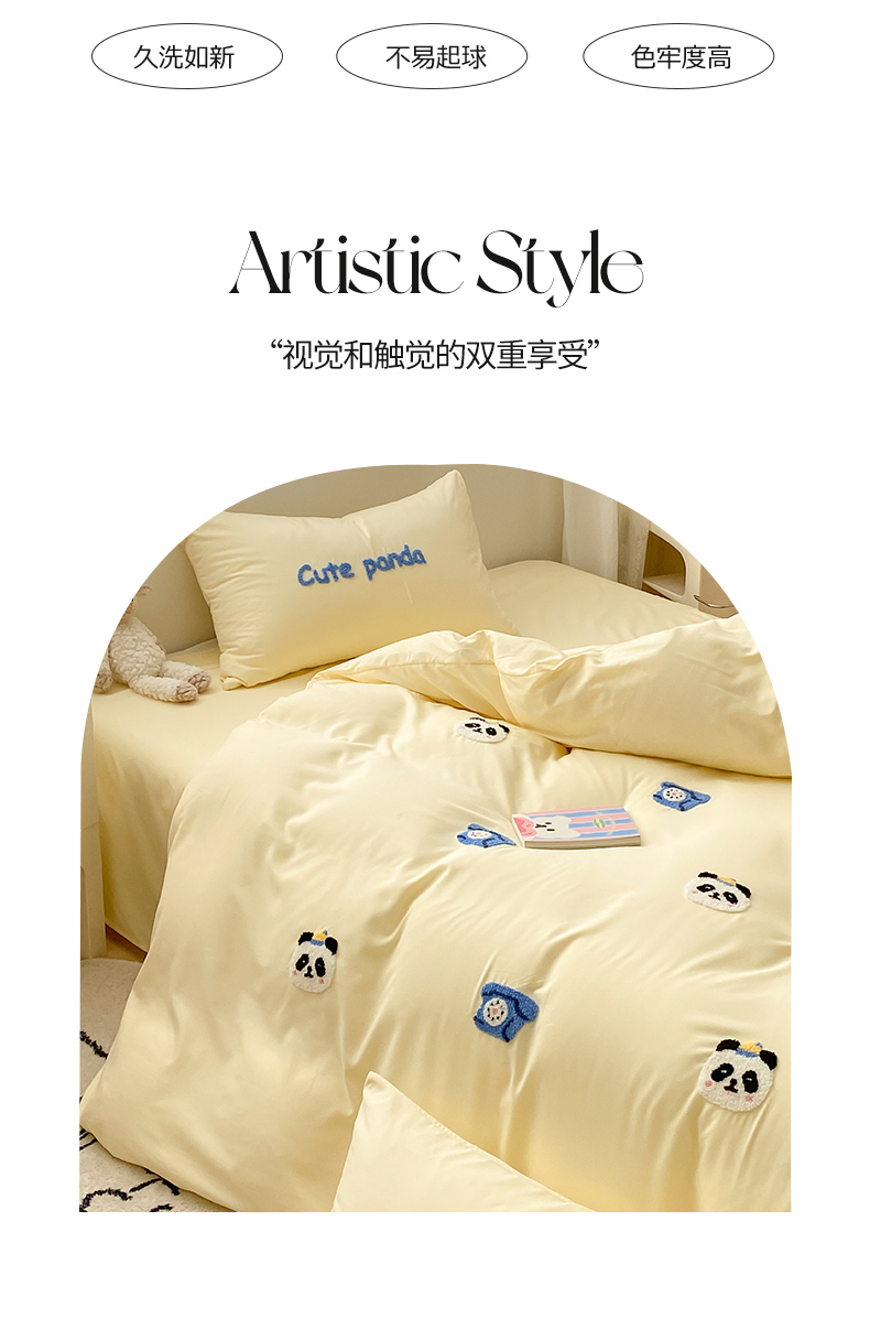 商品名称:尤米 2024新款奶油风水洗棉系列单被套 小熊猫-黄