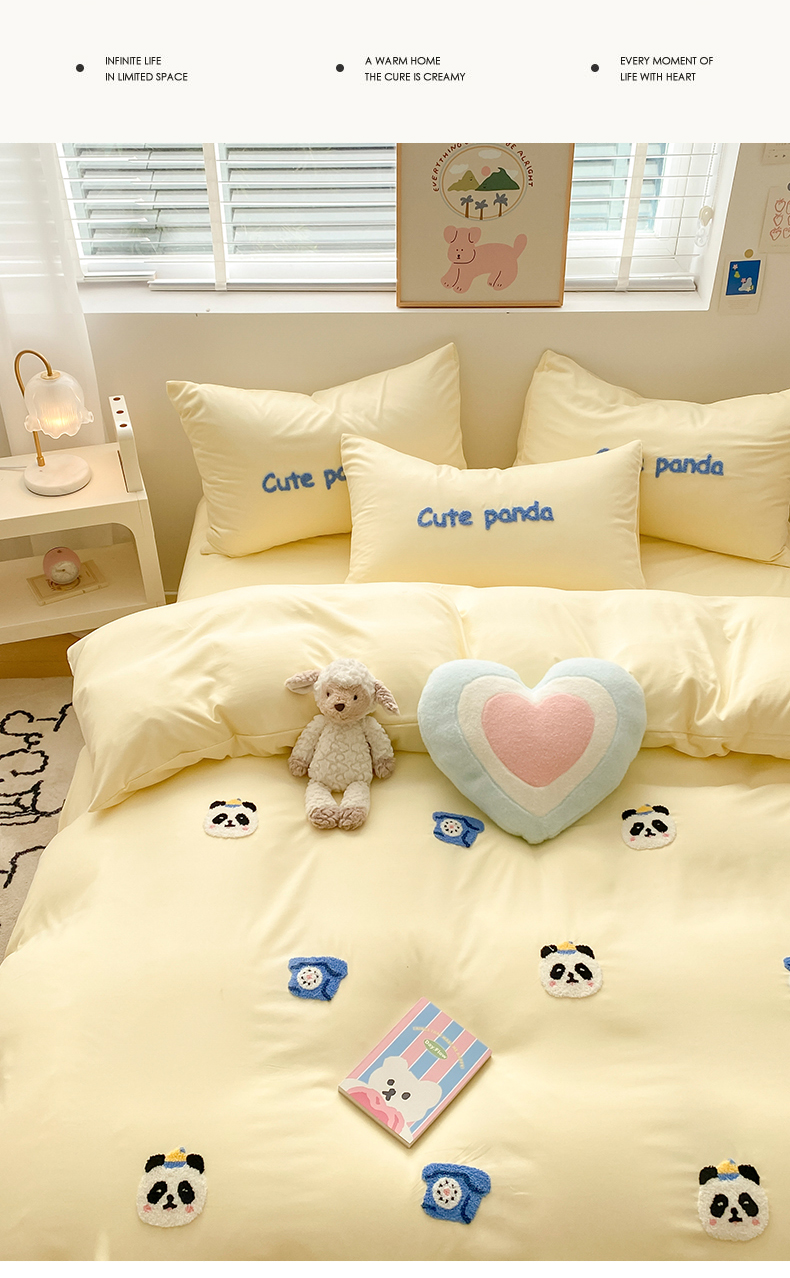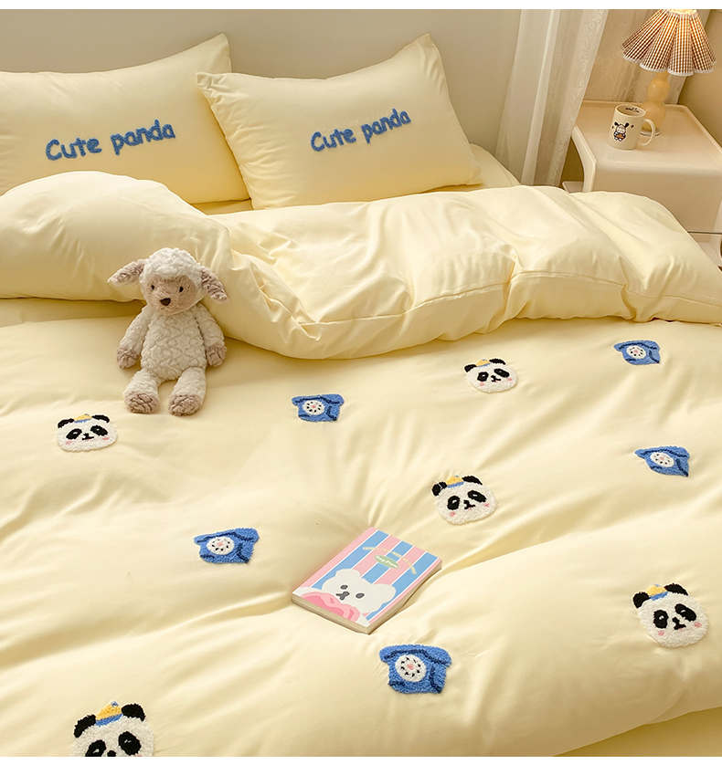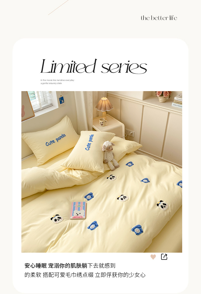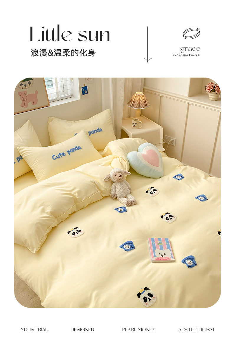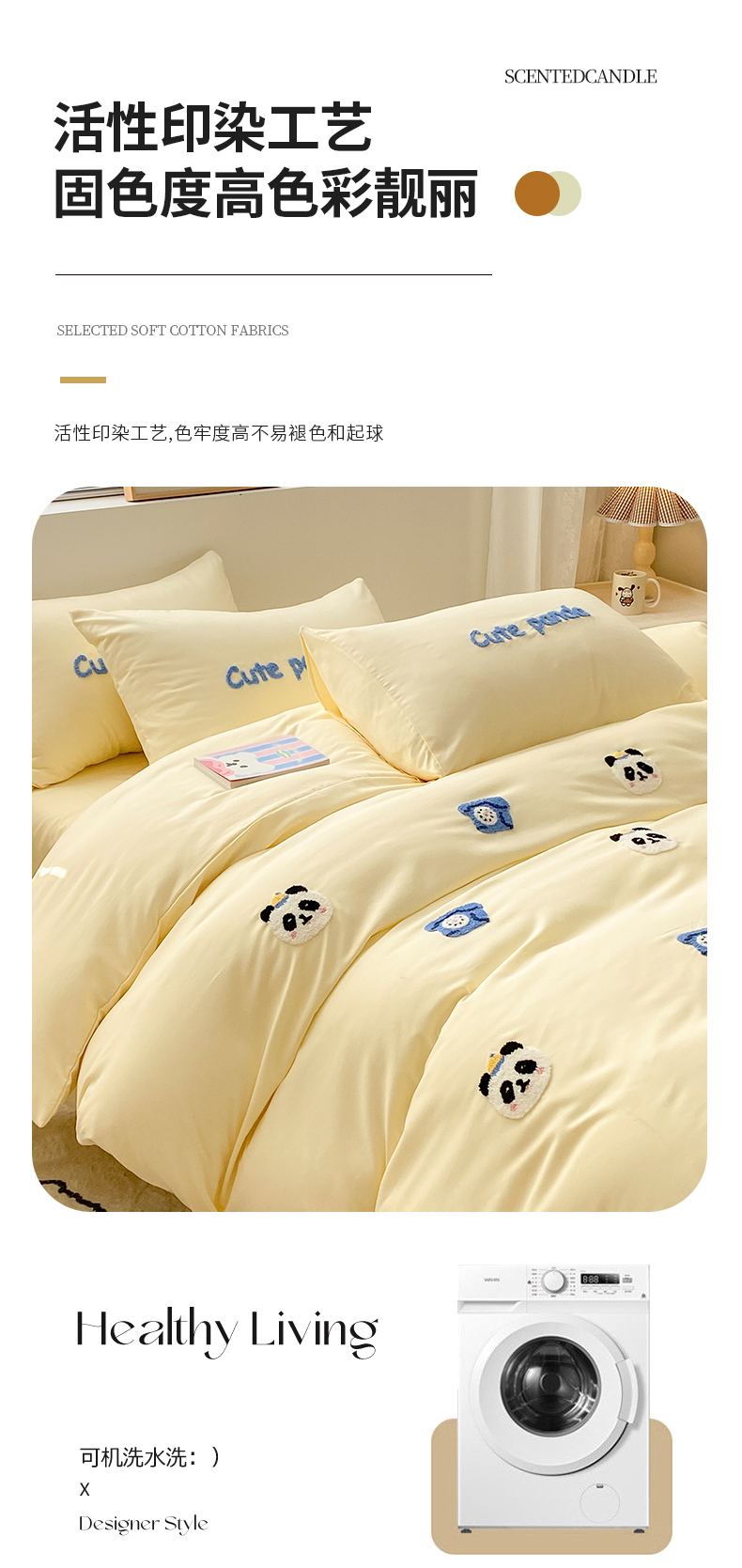 (总) 尤米 2024新款奶油风水洗棉四件套,可爱狗-白,可爱狗-粉,小熊猫-黄,小熊猫-蓝,郁金香-白,郁金香-绿