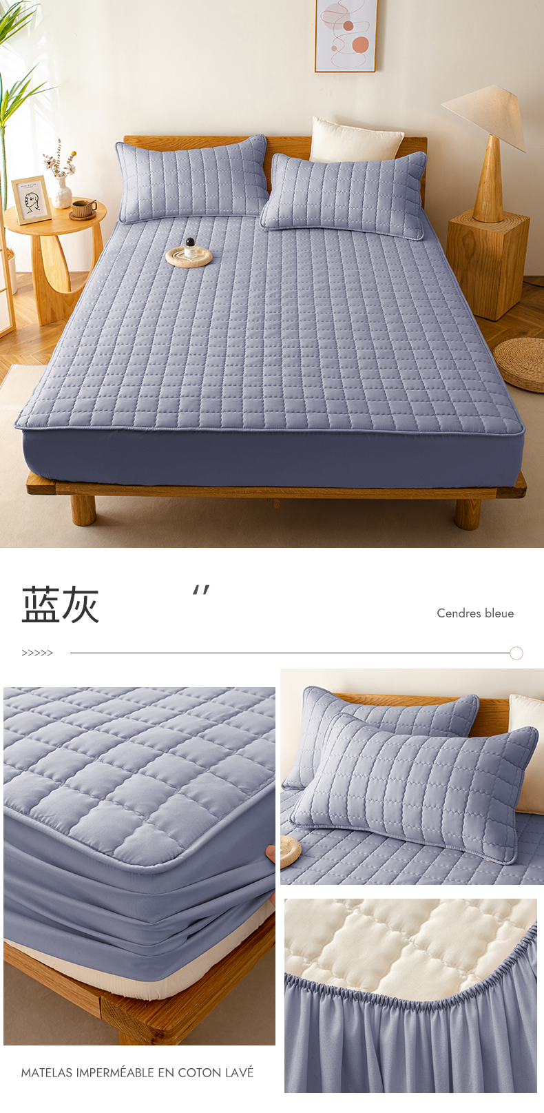 商品名称:花言狐语 2025新款A类原棉防水防污床笠--艾薇格系列 艾薇格床笠-蓝灰