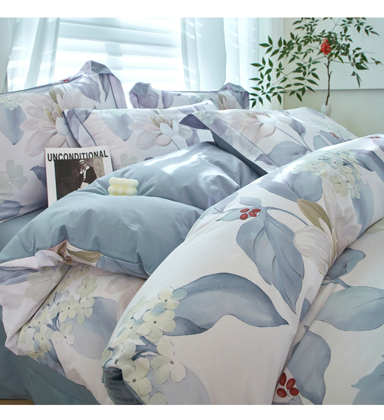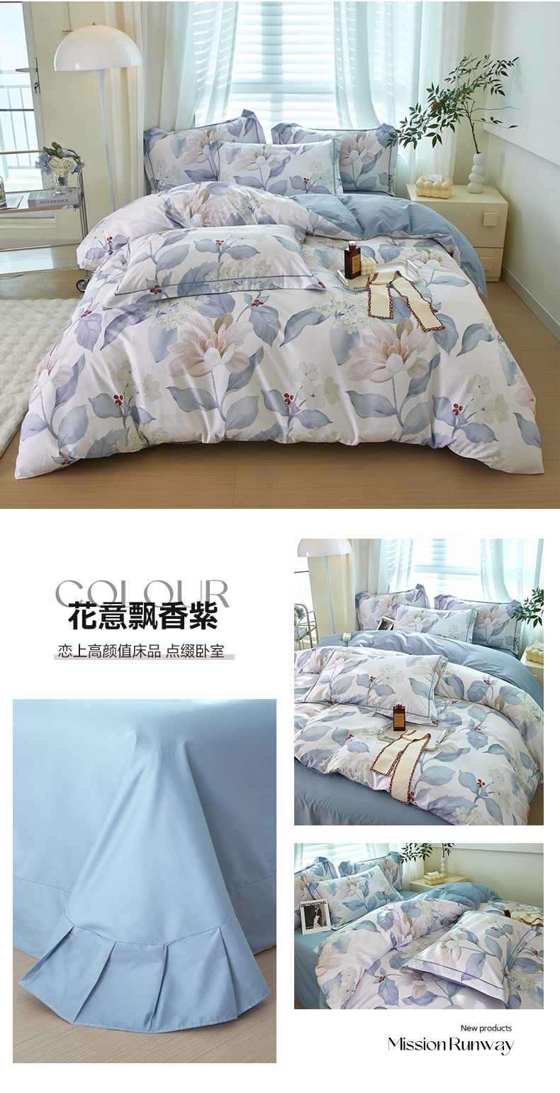 商品名称:启航家居 2025春夏全棉铂金棉数码印花四件套 云中歌兰