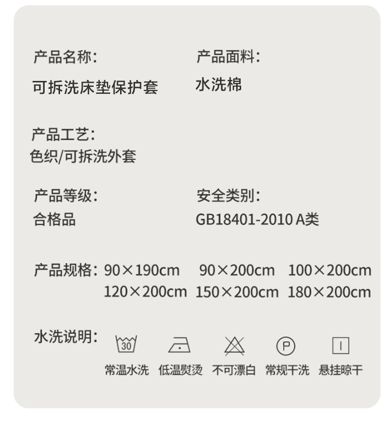 商品名称:元昊床垫 2025新款水洗棉可拆洗床垫保护套 旅行