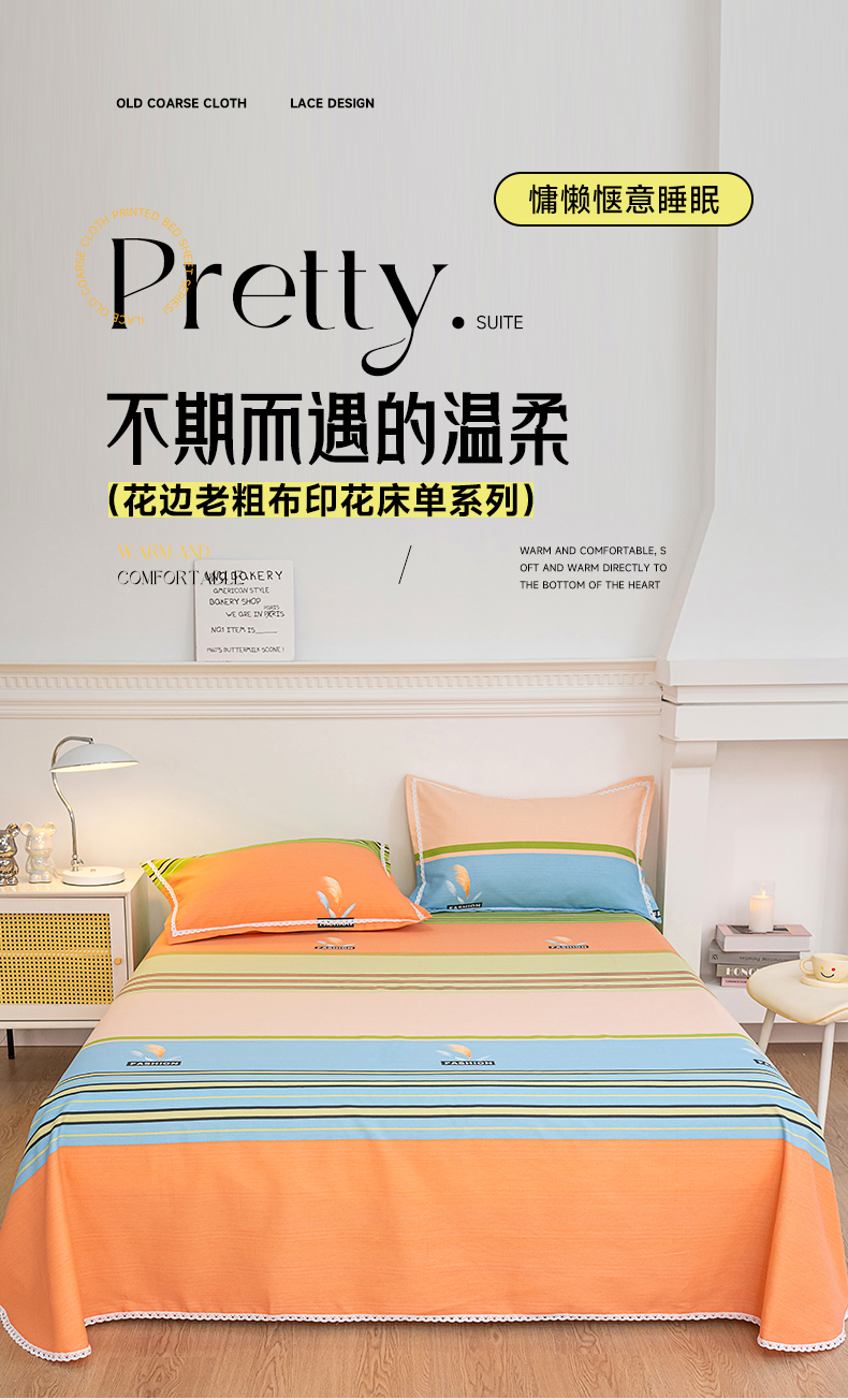 商品名称:棉乐町家居 2025新款花边老粗布印花床单系列 浪漫巴黎