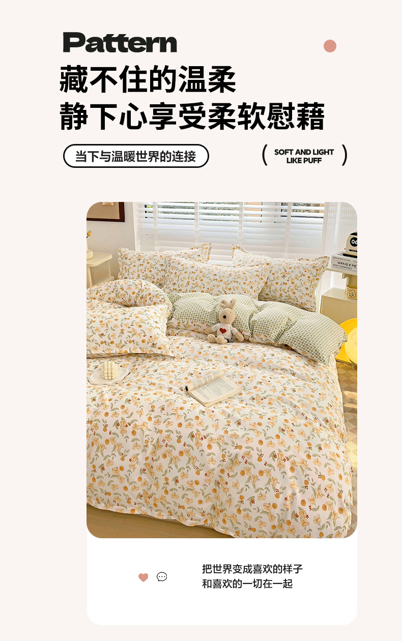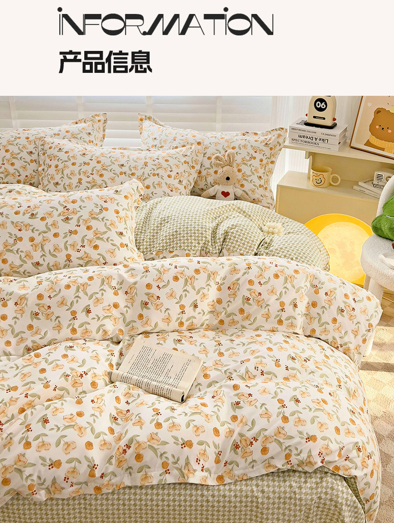 商品名称:楠沐家纺 2025新款亲肤柔软水洗棉磨毛印花被套 花千朵