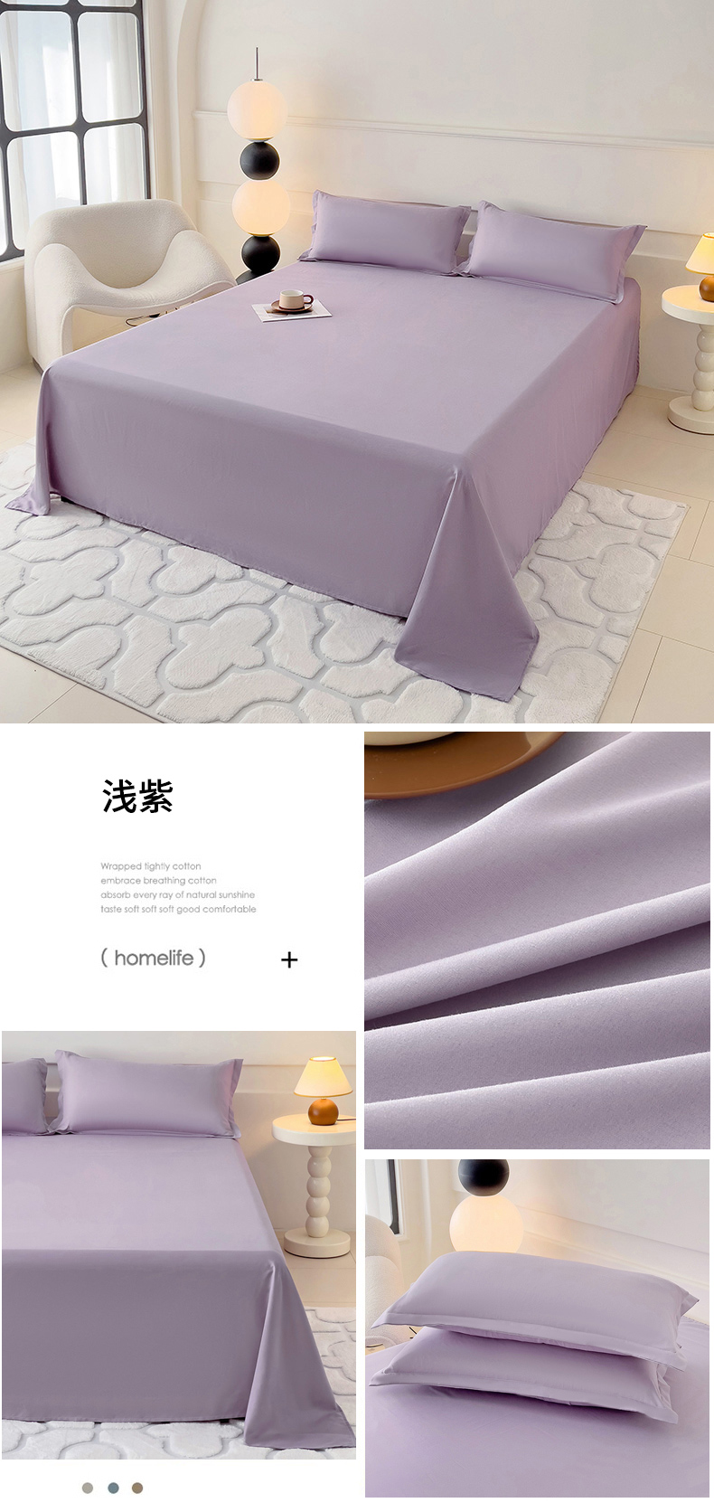 • 91家纺网 家纺一手货源 找家纺 楠沐家纺  2025年新款纯色亲肤芦荟棉水洗棉床单系列床单枕套 浅紫