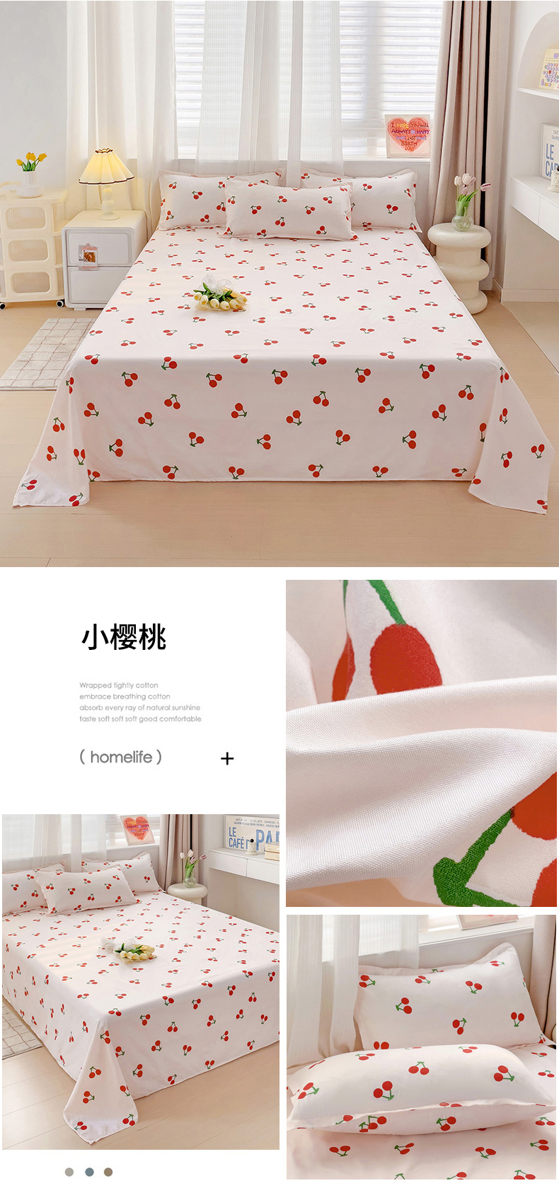 楠沐家纺 2025年新款亲肤水洗棉芦荟棉印花床单系列 小樱桃