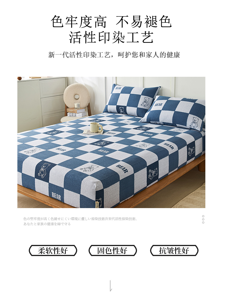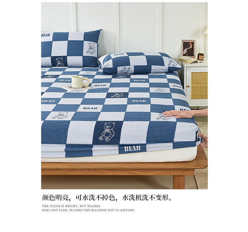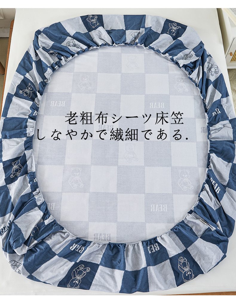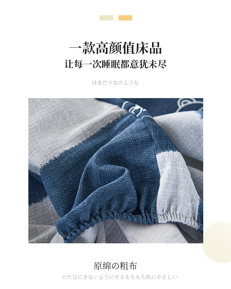 九沐良品 新款全棉无印老粗布单品床笠+三件套 巴比熊(兰)